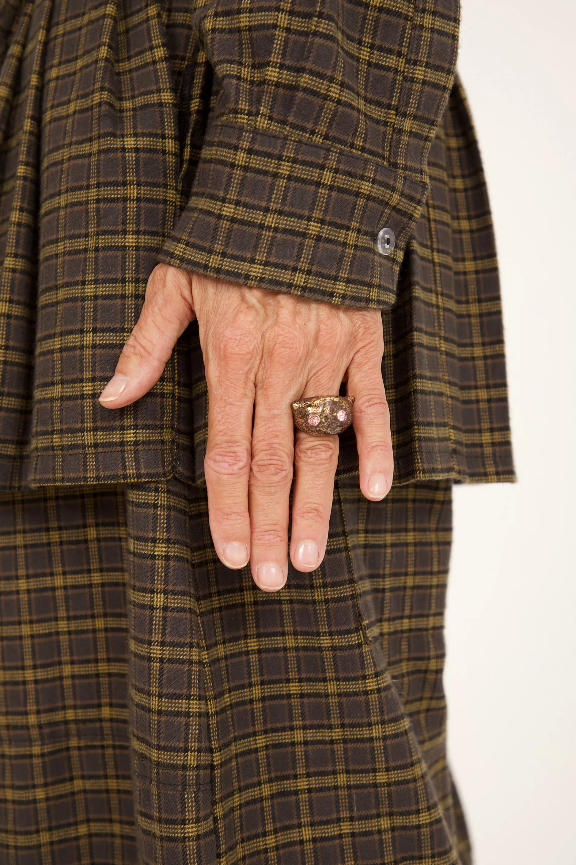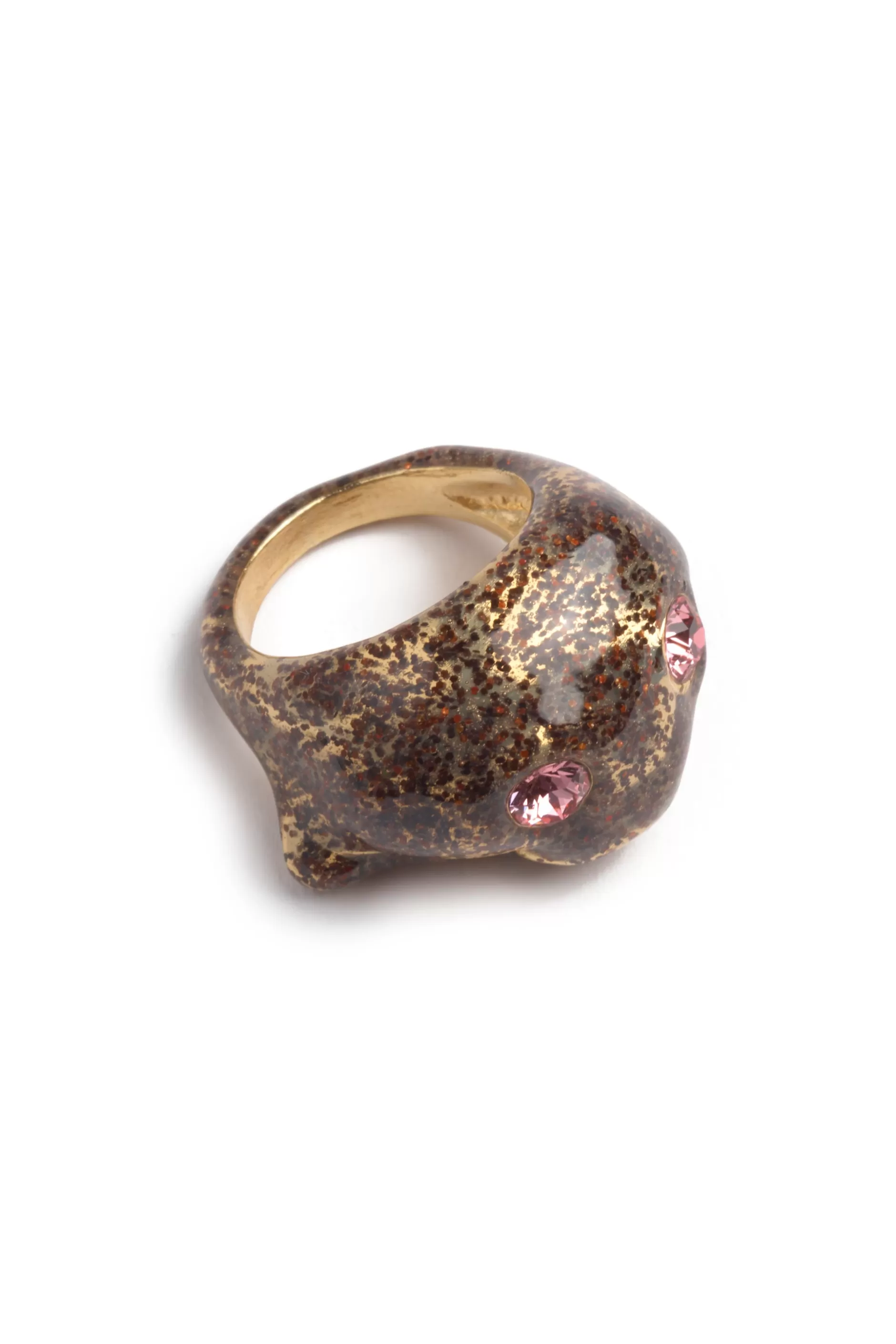 Baby dolphin ring in antique gold with glitter specks and soft pink rhinestone eyes.