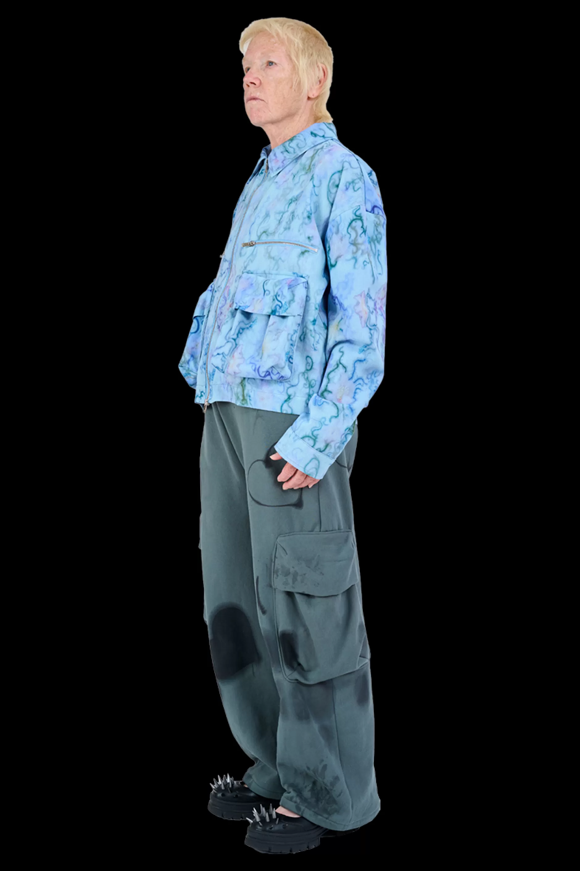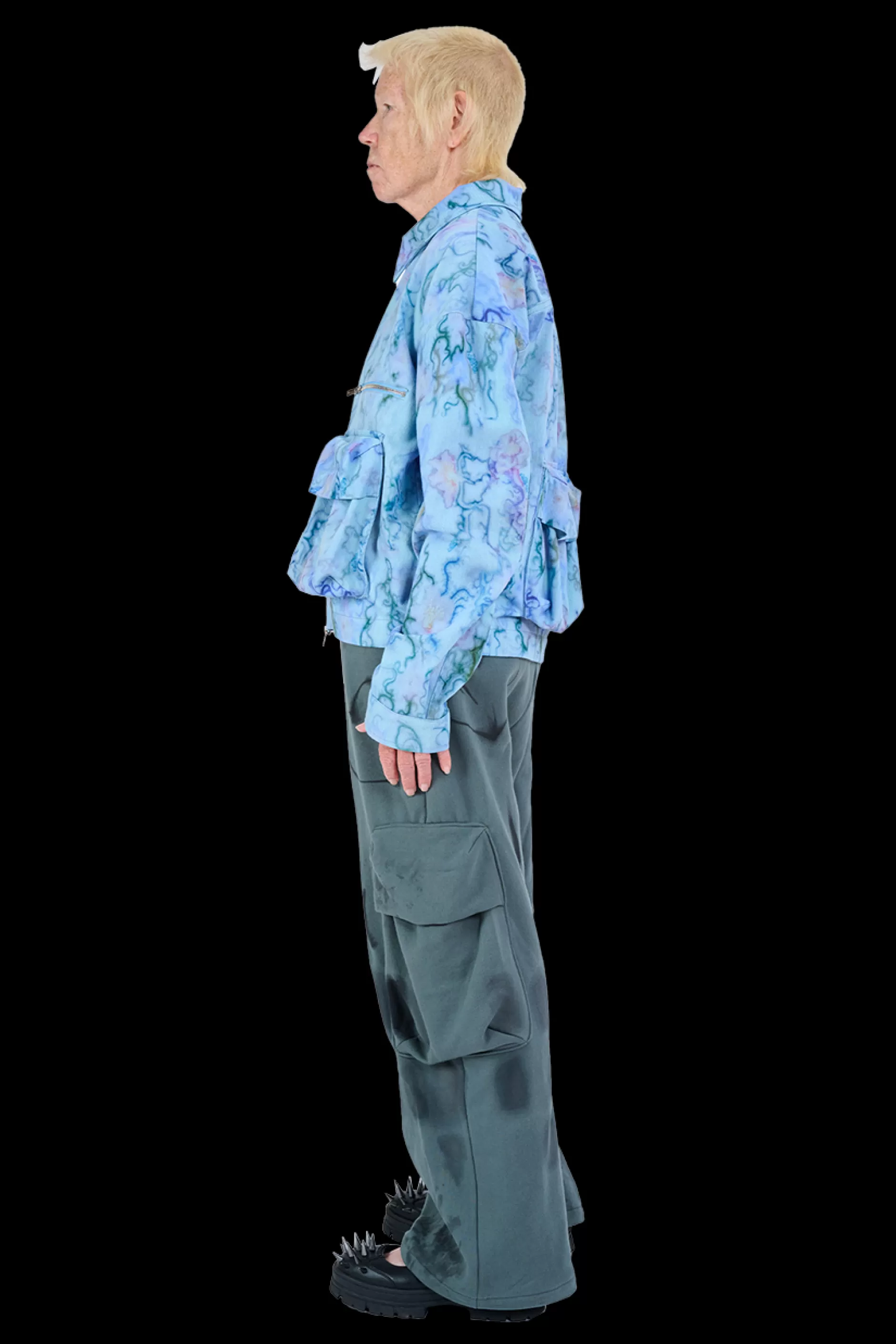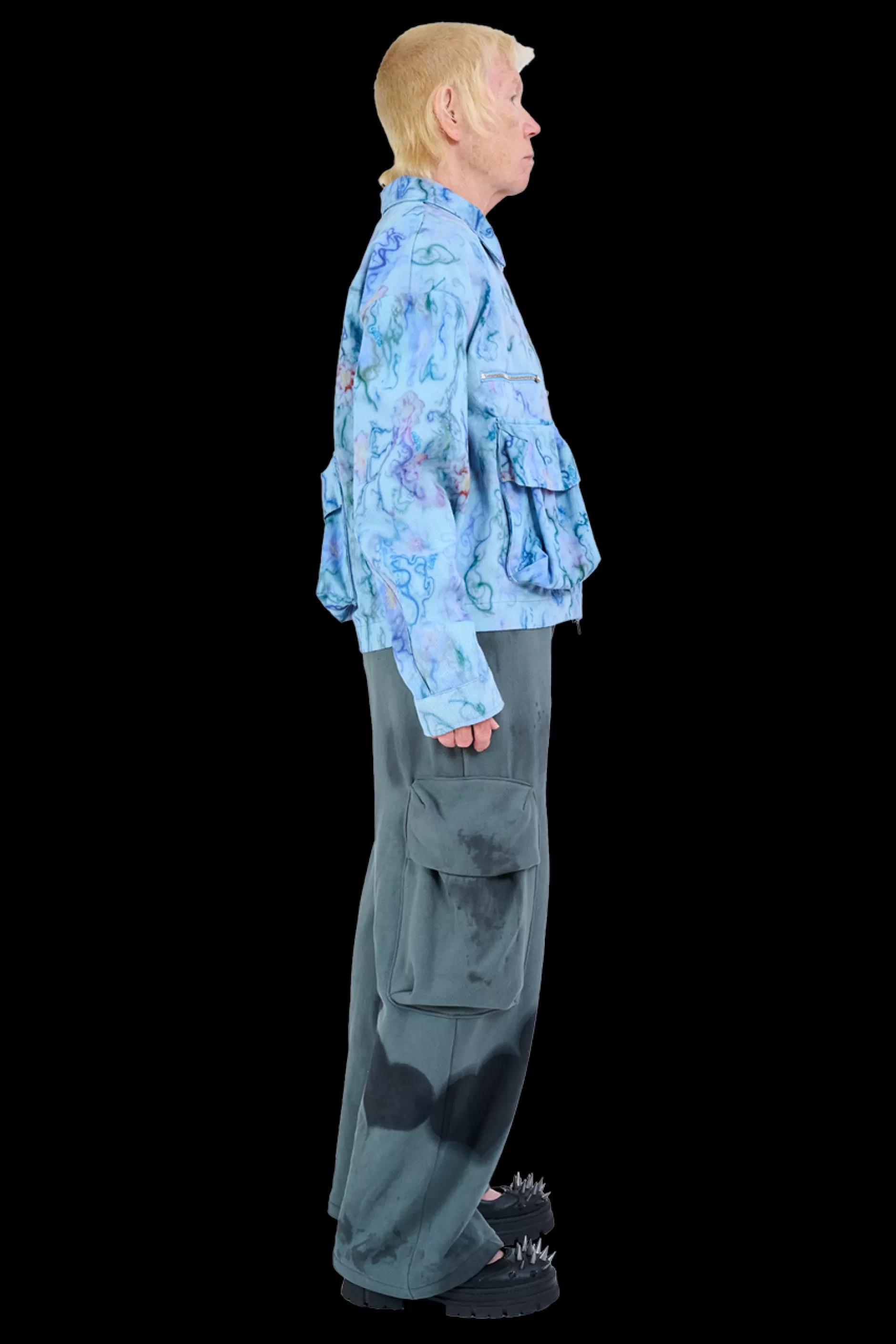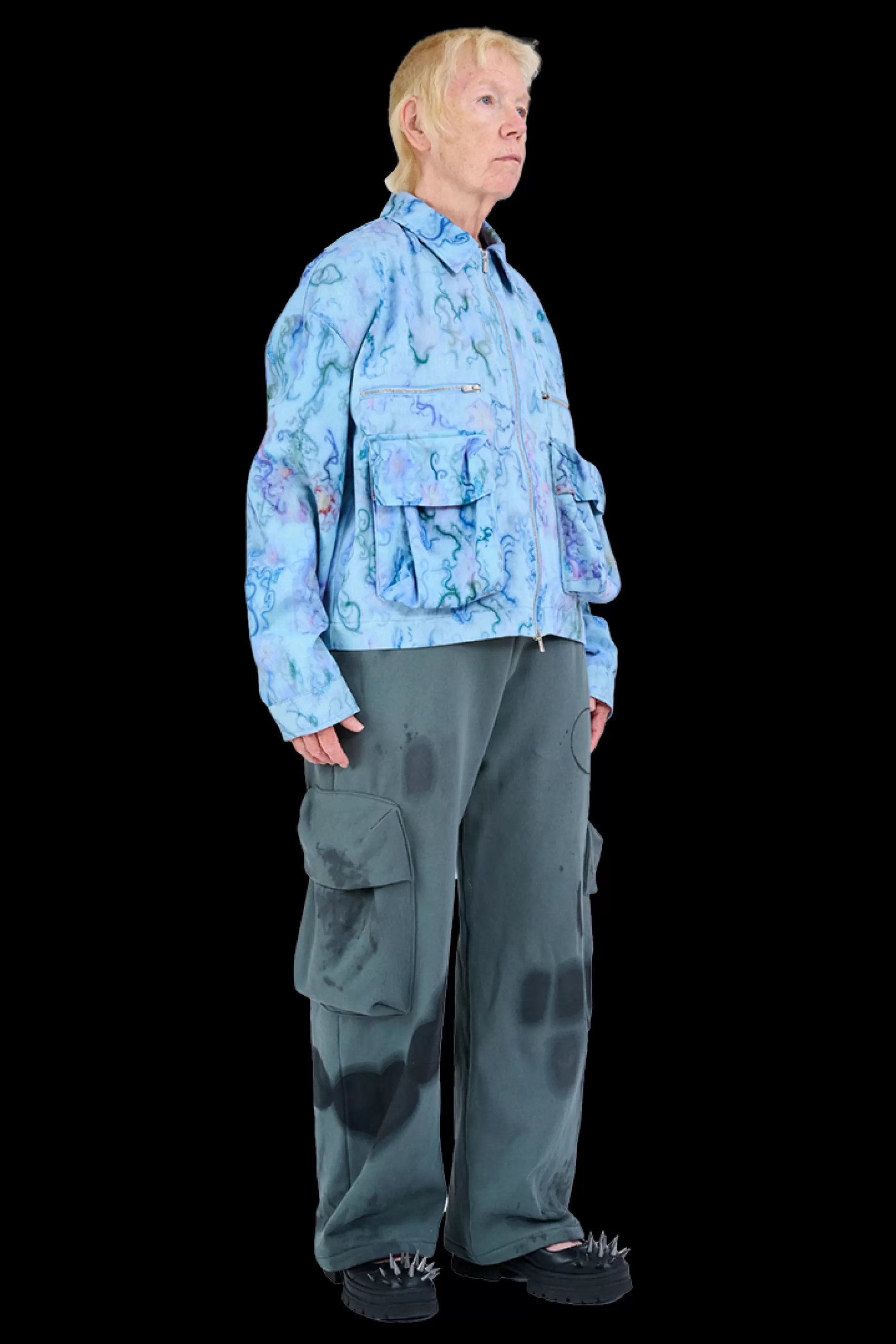 Printed cotton twill jacket with oversized cargo pockets on front and back. Two way zipper.Collina Strada’s AI-generated…