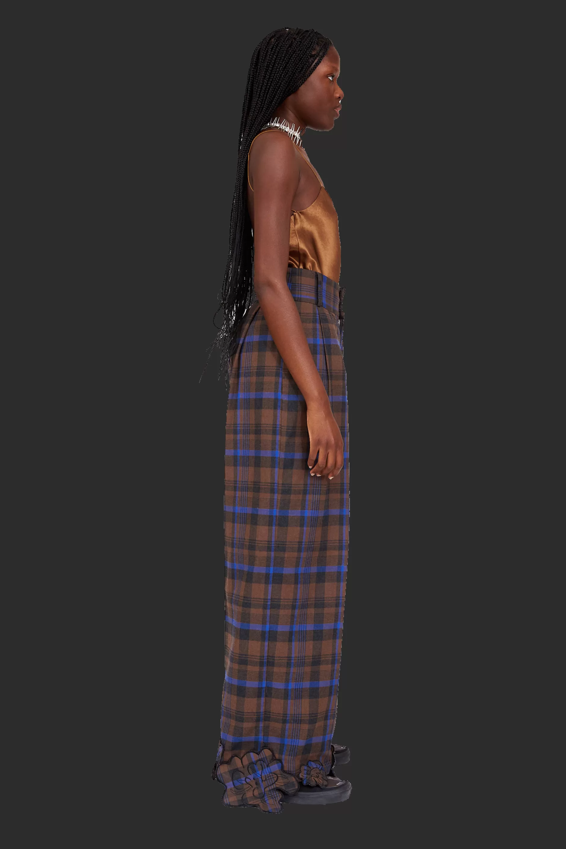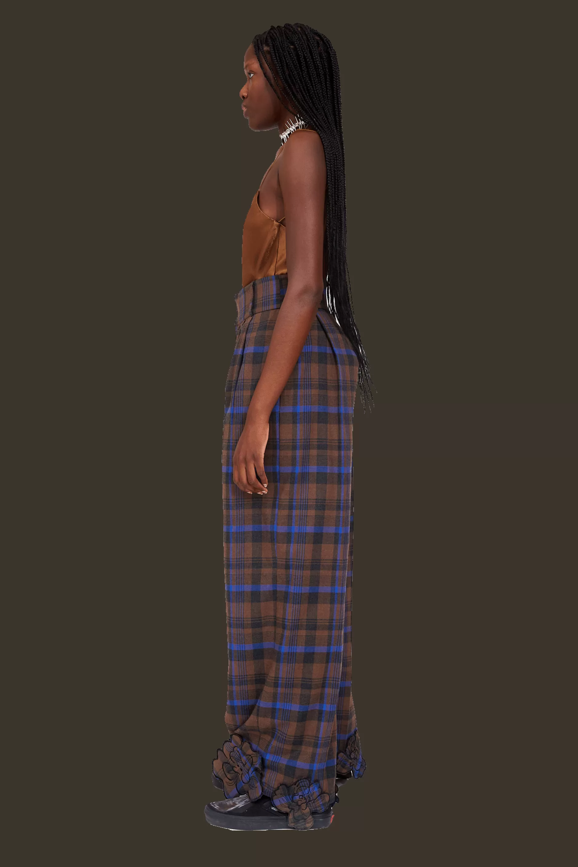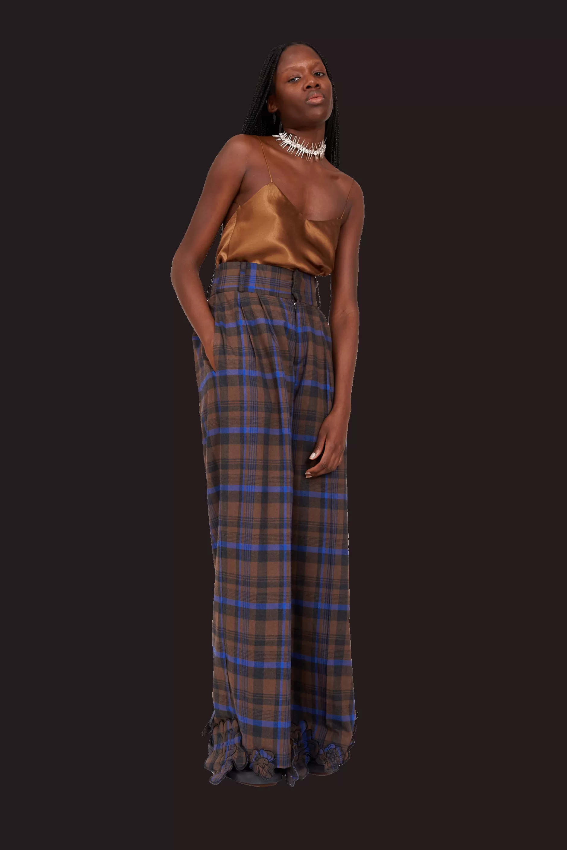 High waisted trouser with embroidered flowers at the hem. Pleat front, extra wide waistband, fully lined. Complete the suit with the Ribbit Blazer and Bunny Button Up.