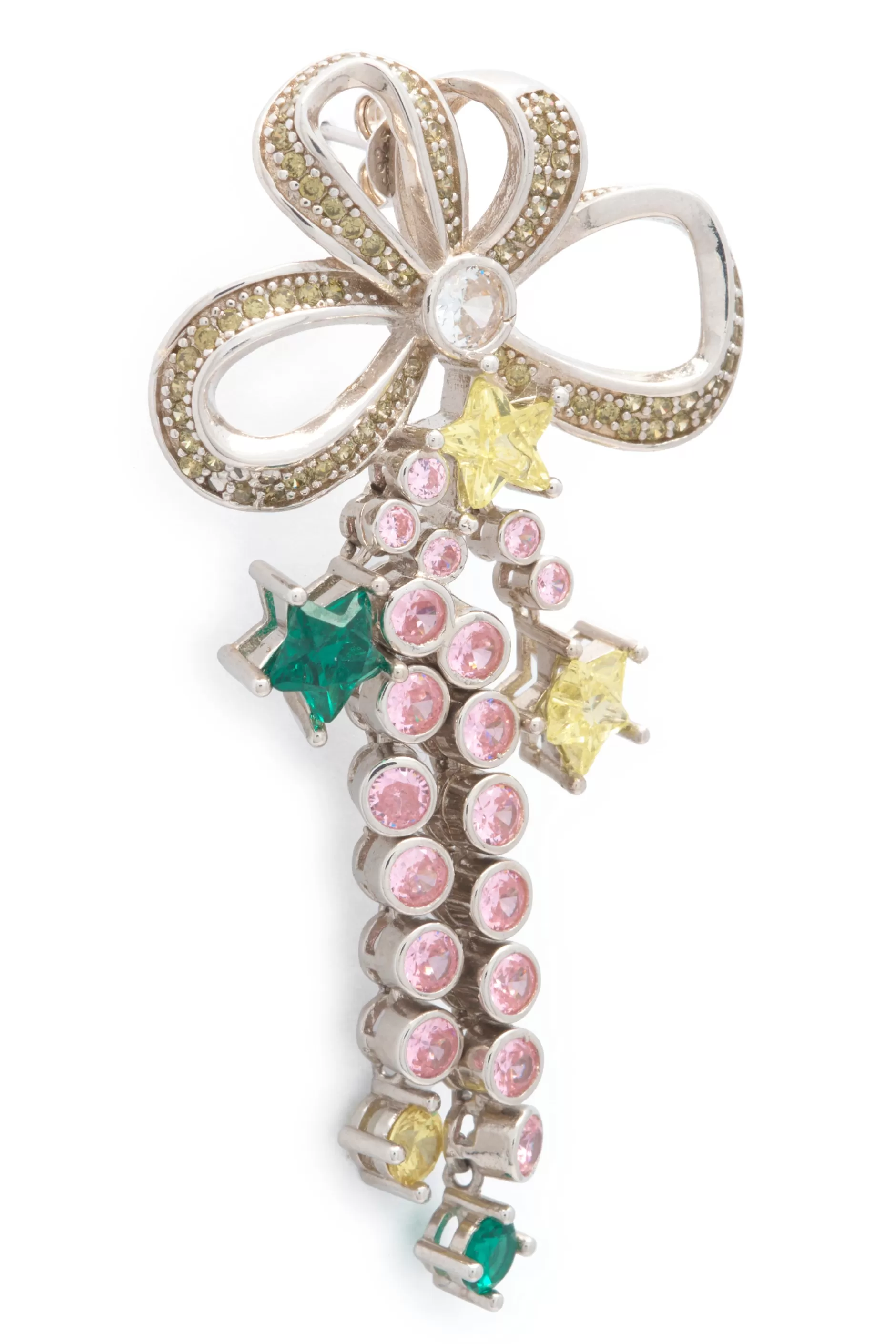 Bow earrings encrusted with pave rhinestones and dangling stars. Stud back.100% sterling silver