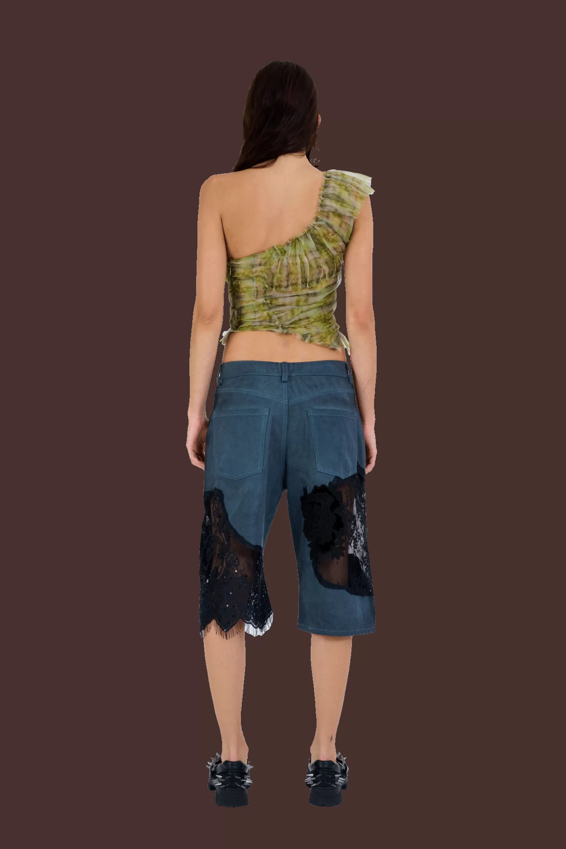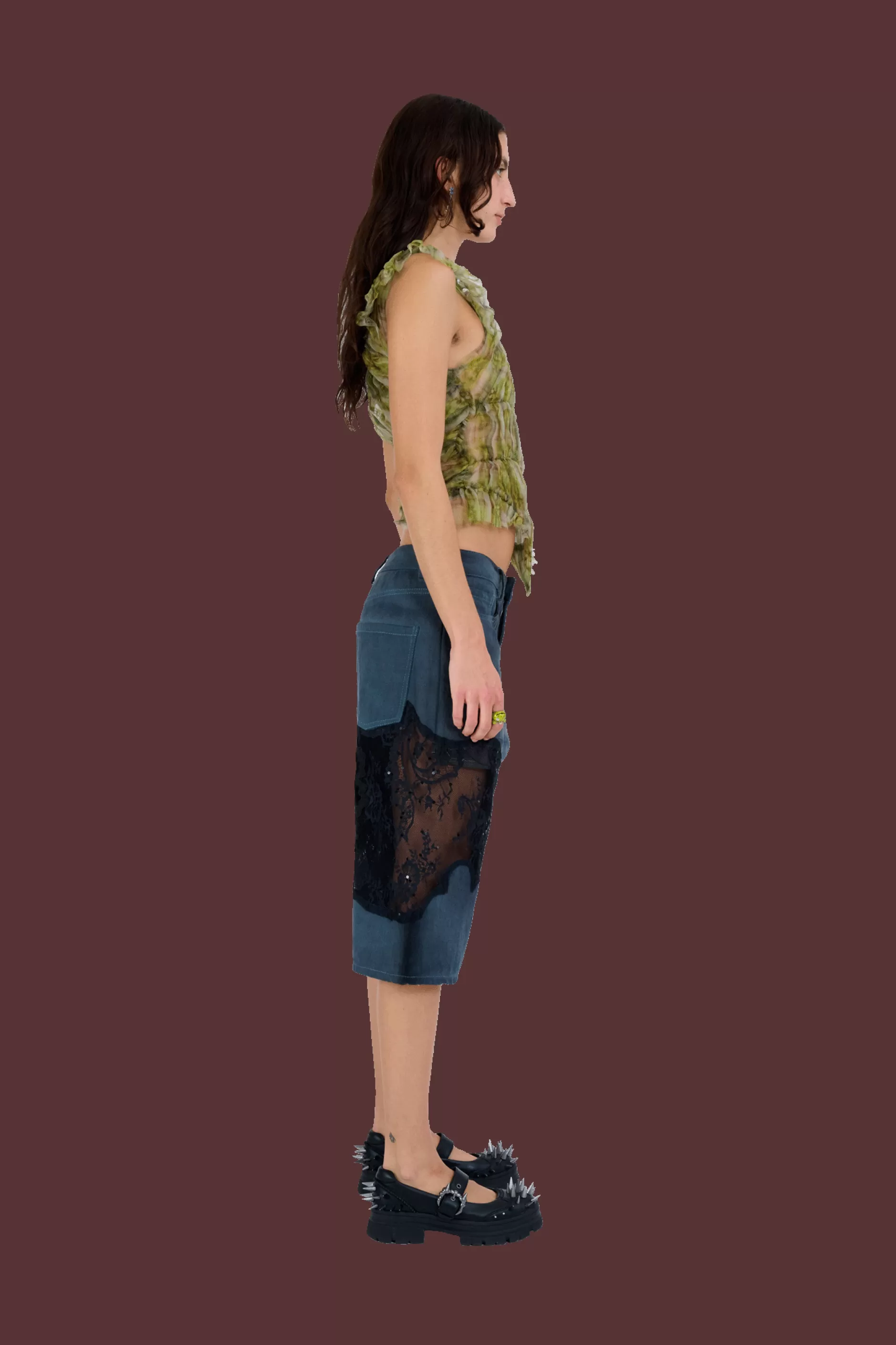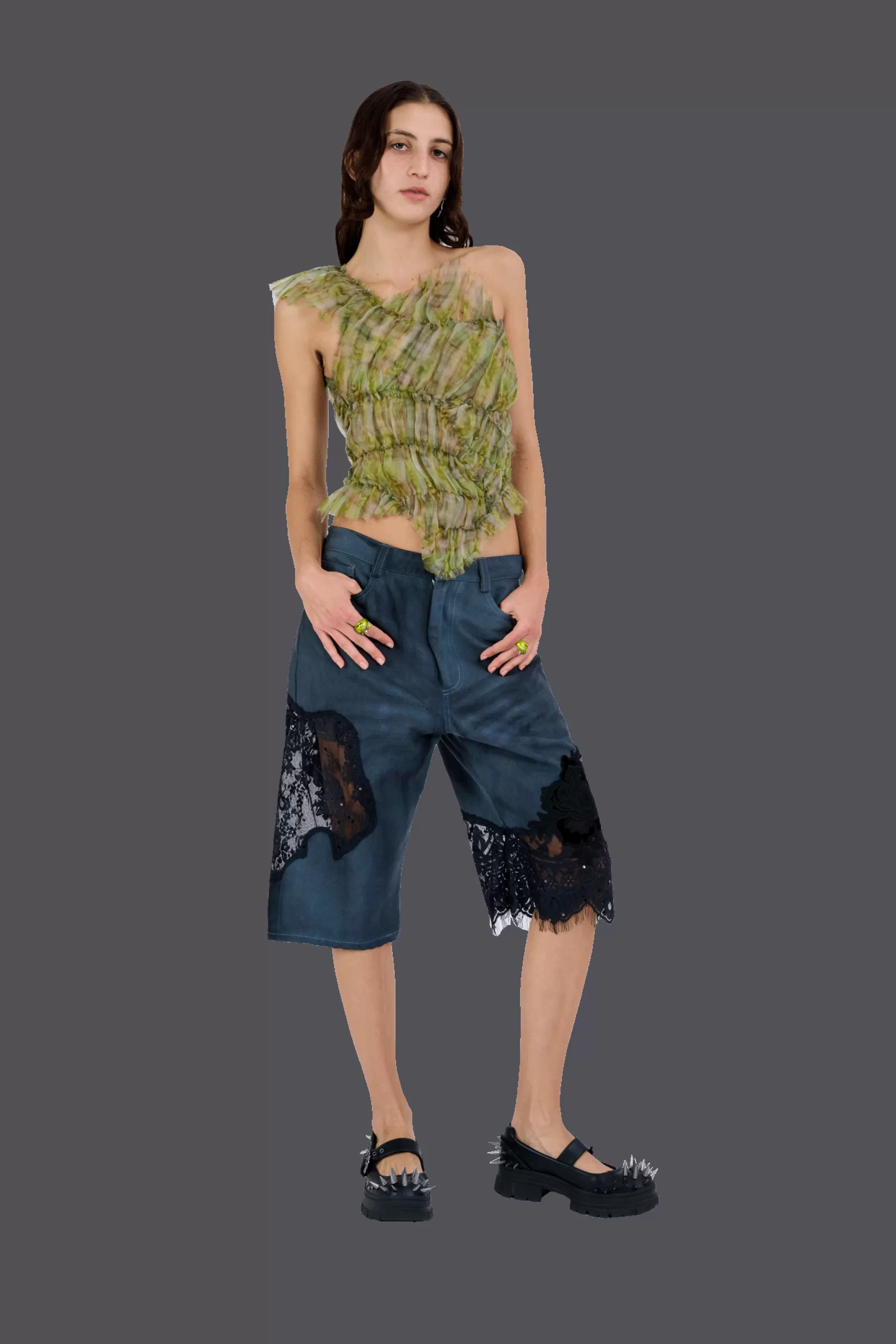 Mid-rise relaxed fit jorts with sequin lace details.100% CottonMade in IndiaModel wears a size S