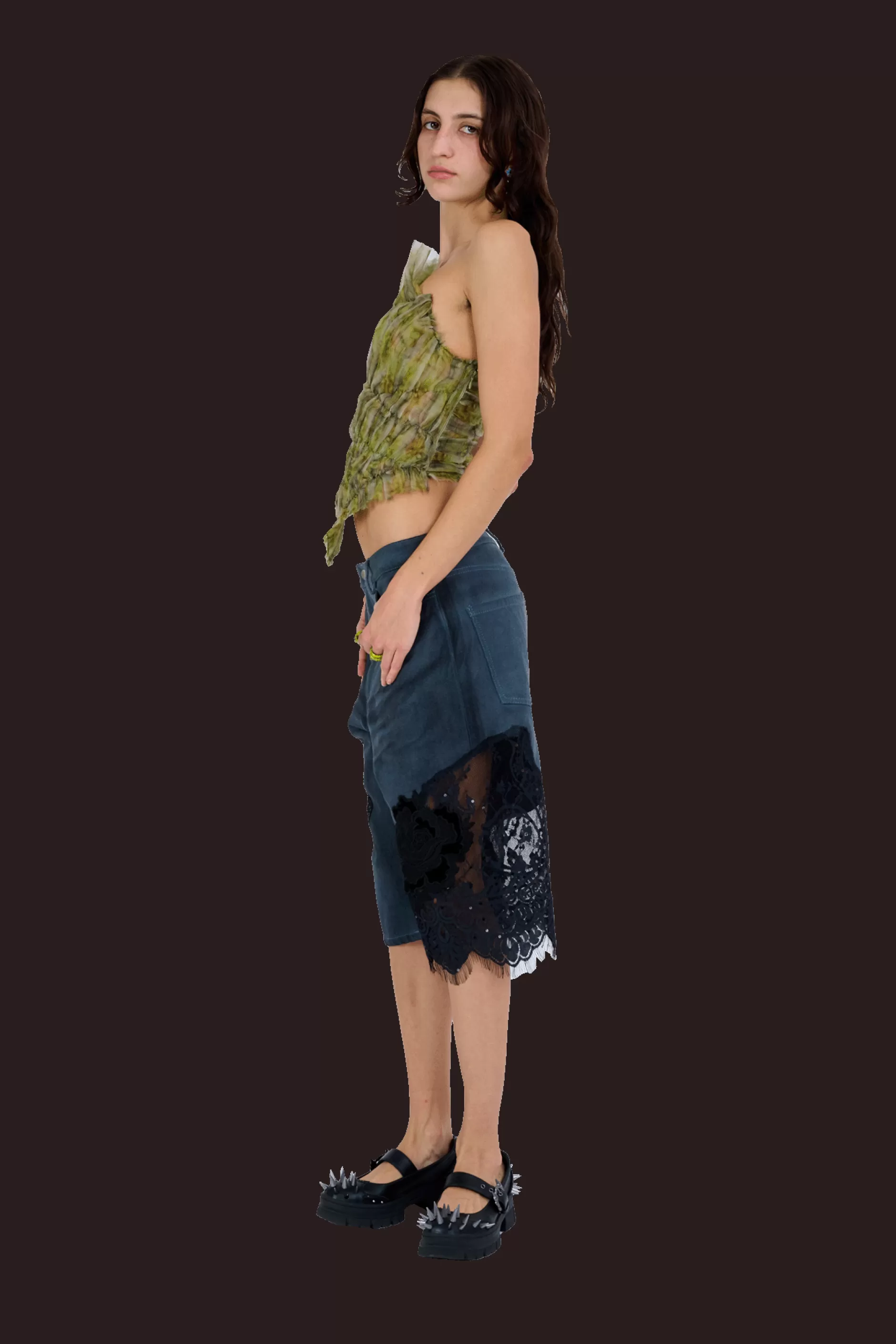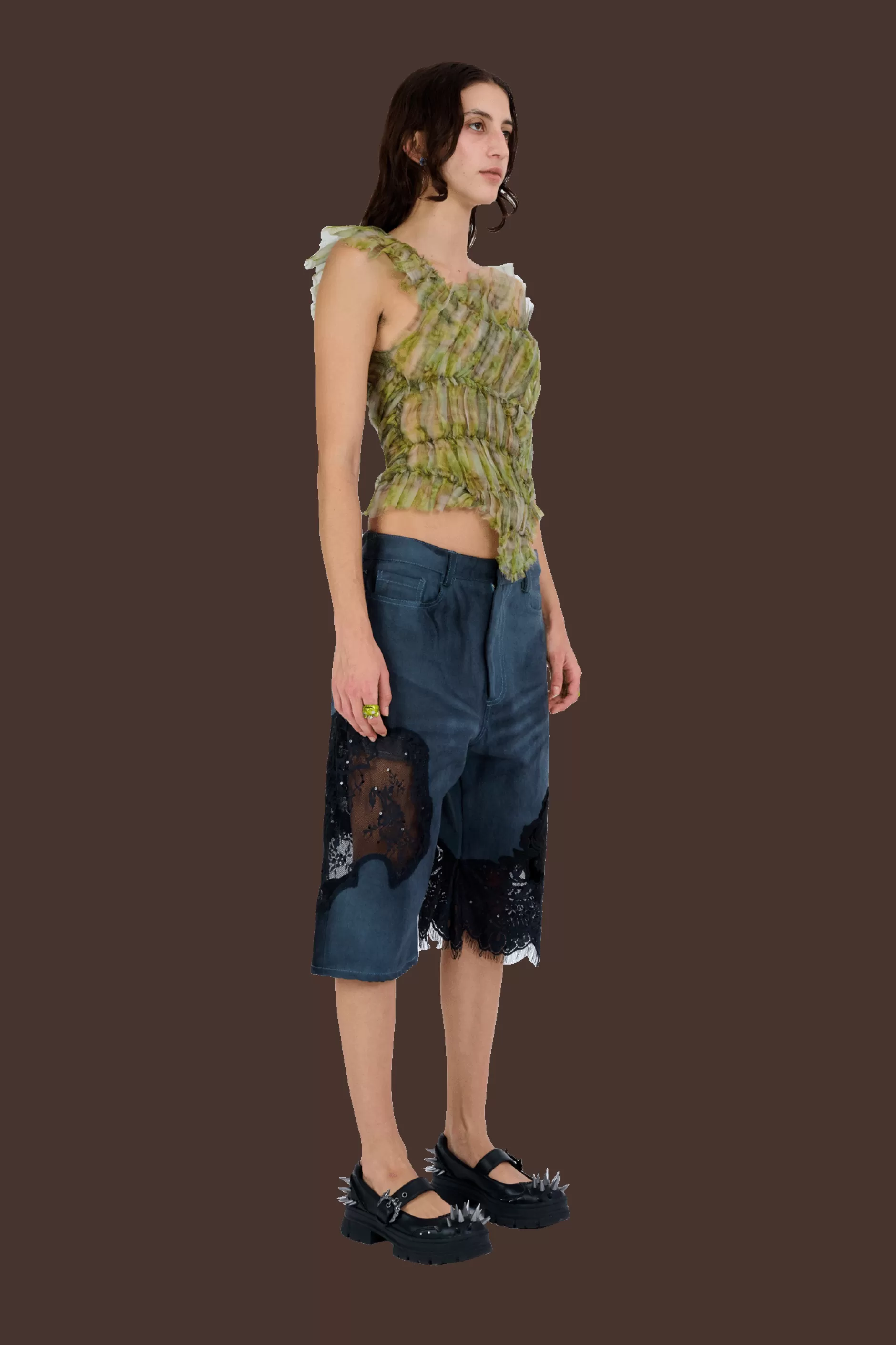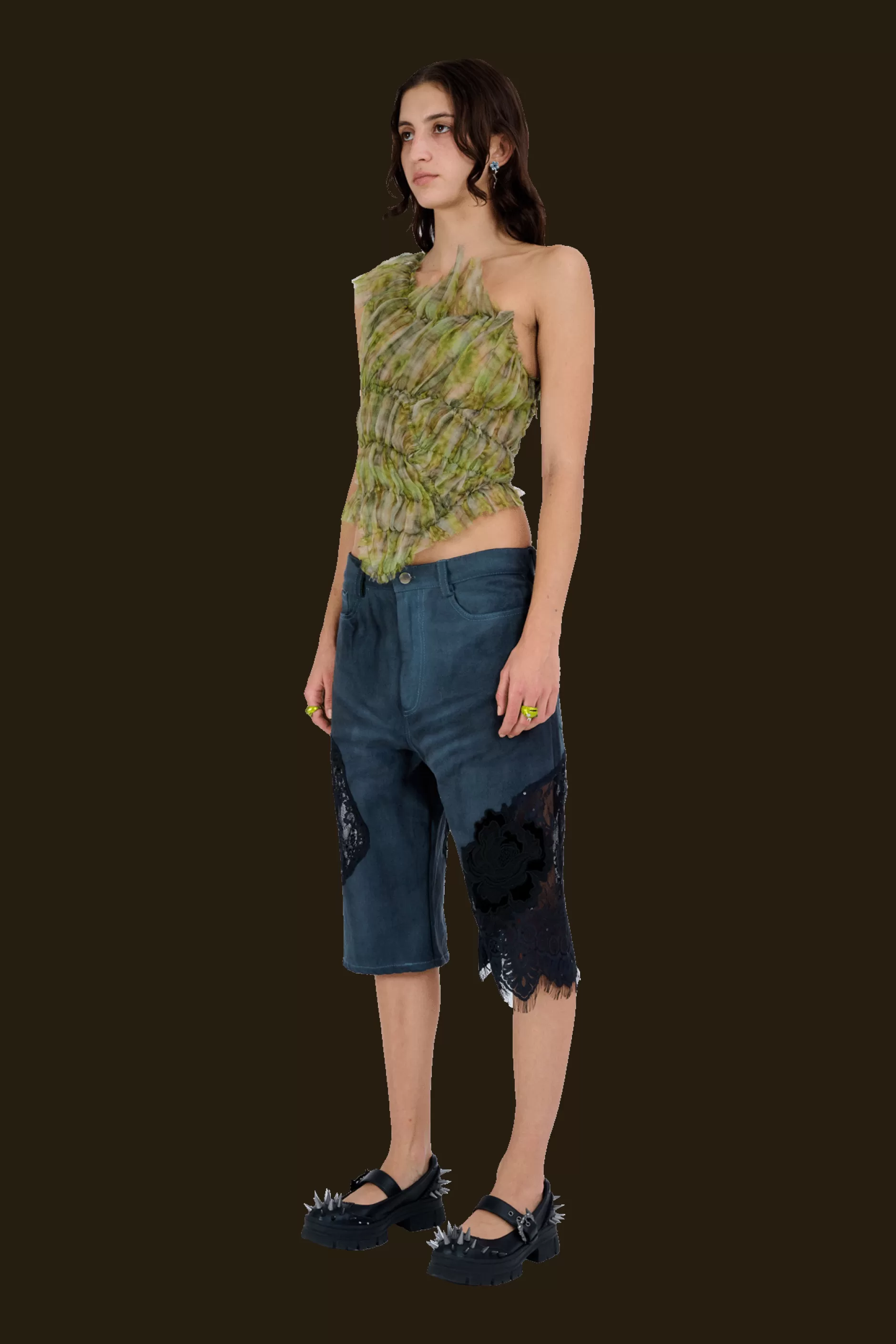 Mid-rise relaxed fit jorts with sequin lace details.100% CottonMade in IndiaModel wears a size S