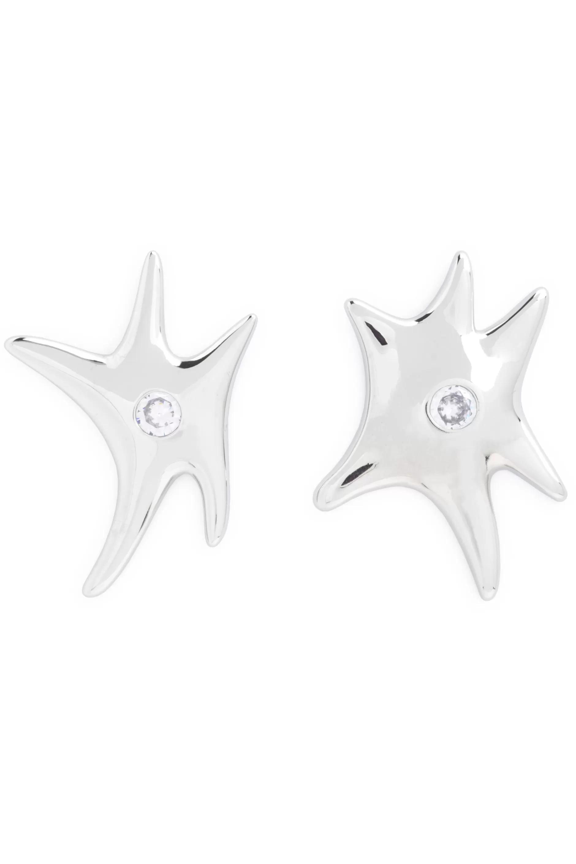 Oversized star earrings with extra large rhinestone center. Mismatched pair. Stud back. 6 x 7 cm Jewelry bag handmade w…