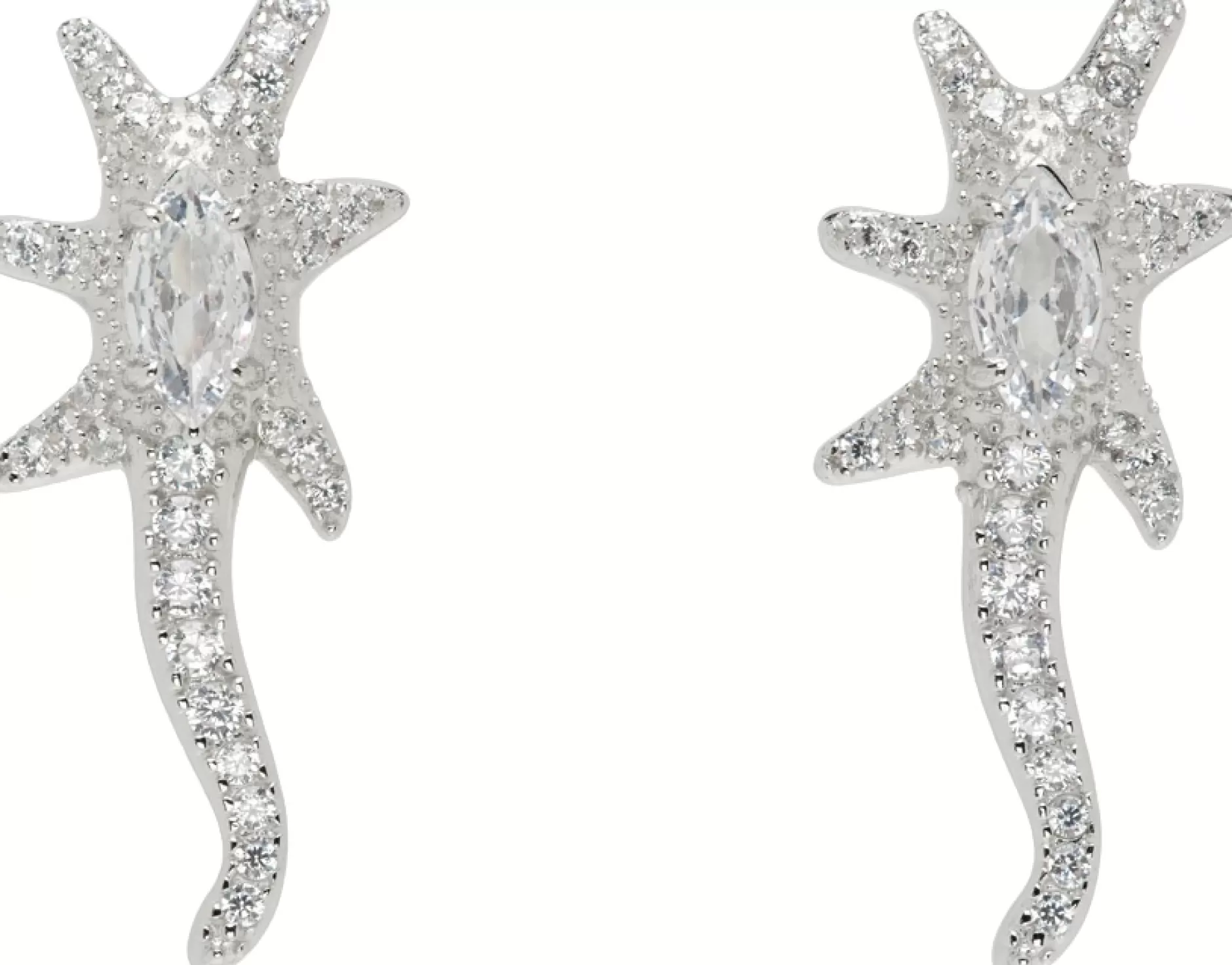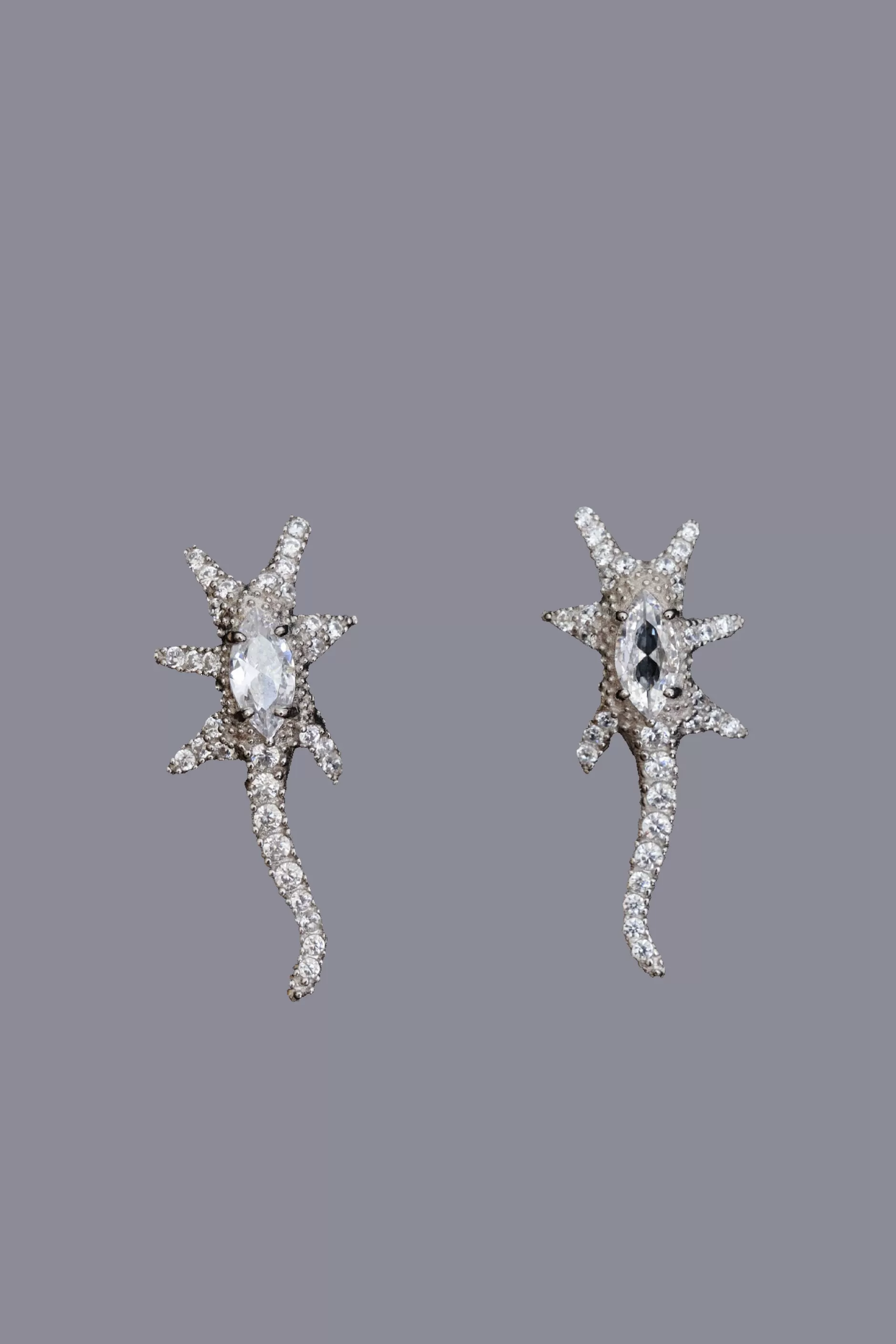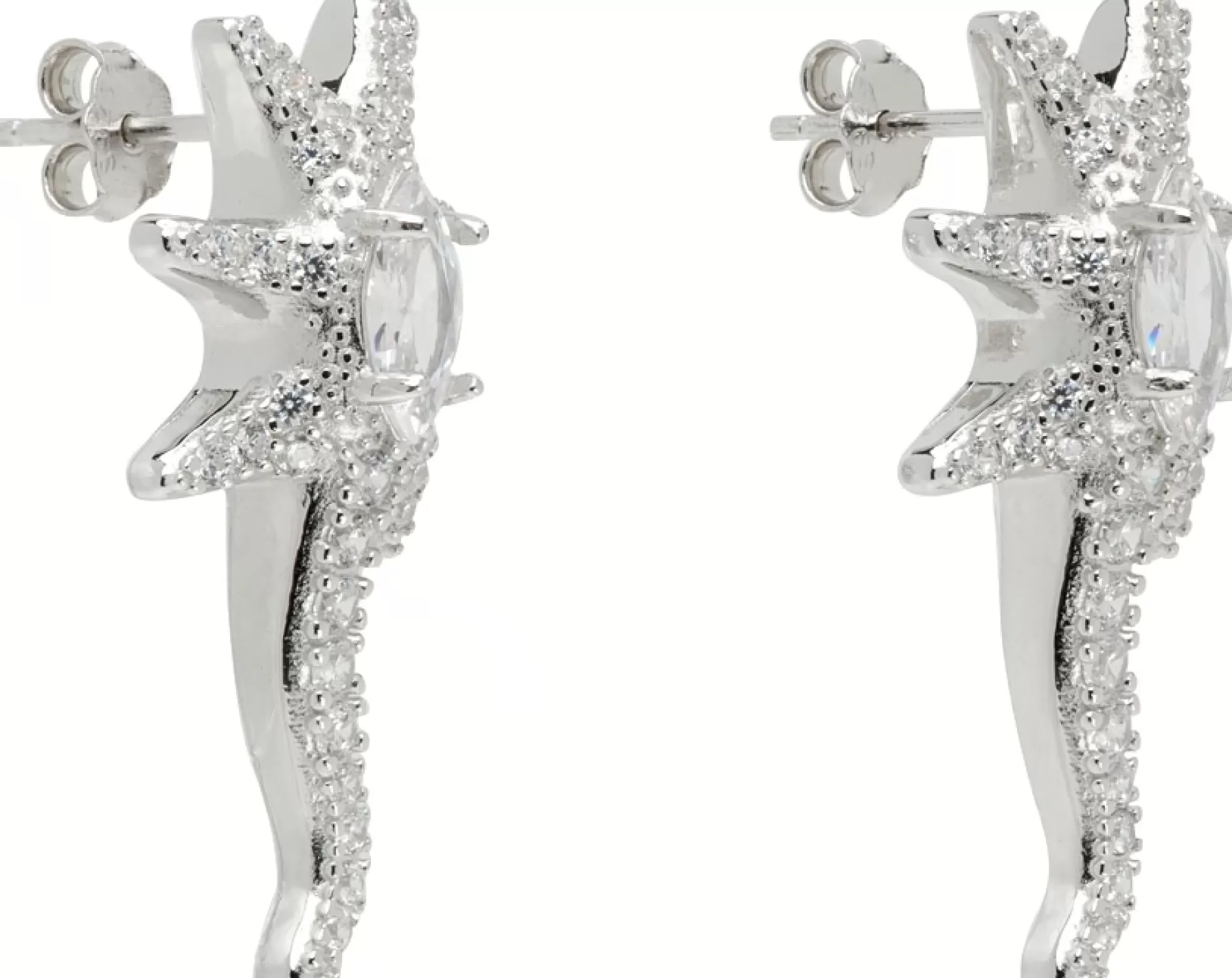 Sterling silver star trail earrings encrusted in clear rhinestones. Stud back. 100% Sterling Silver with Swarovski Crystals
