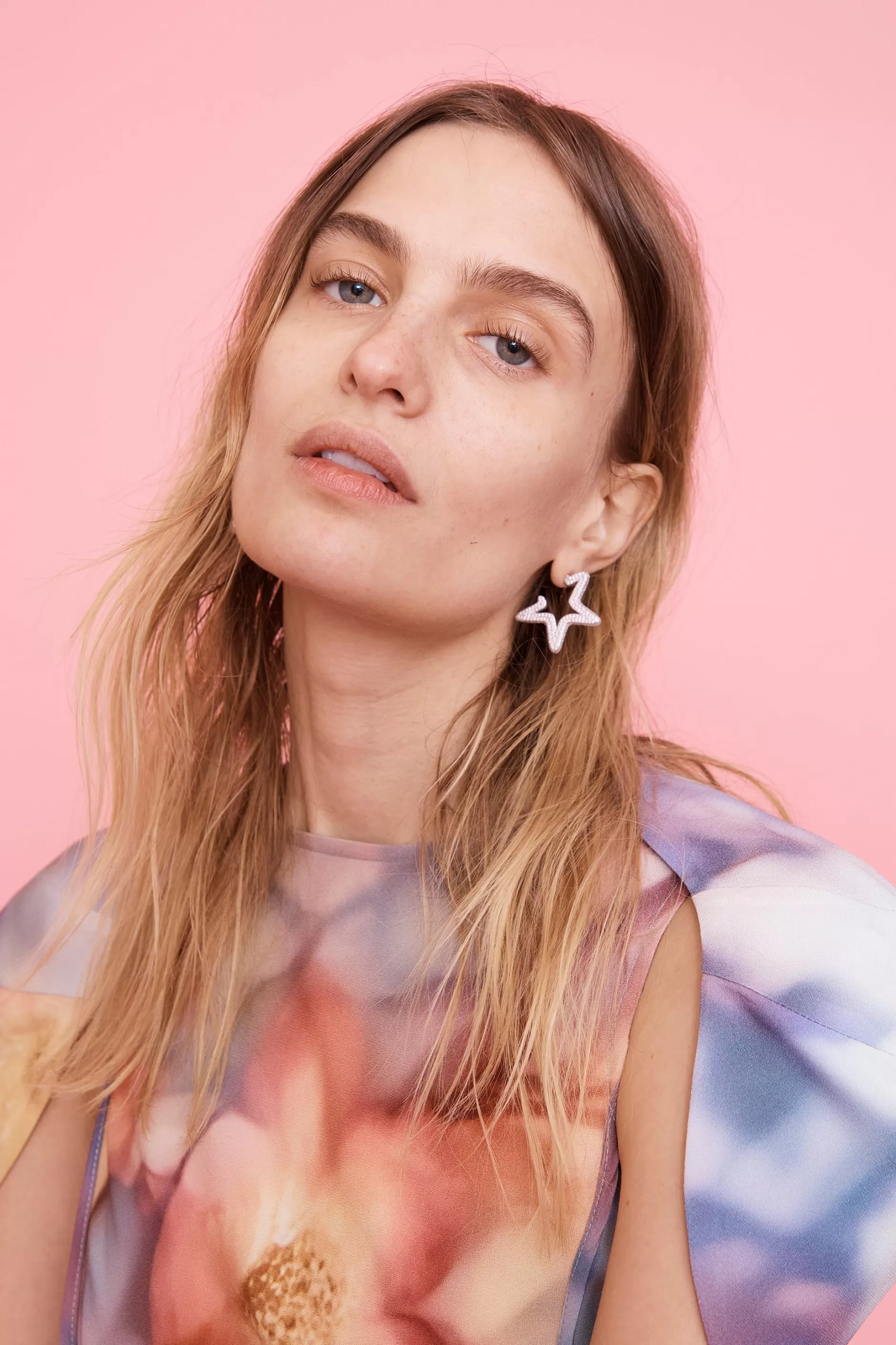 Sterling silver super star earrings encrusted in clear rhinestones. Stud back.