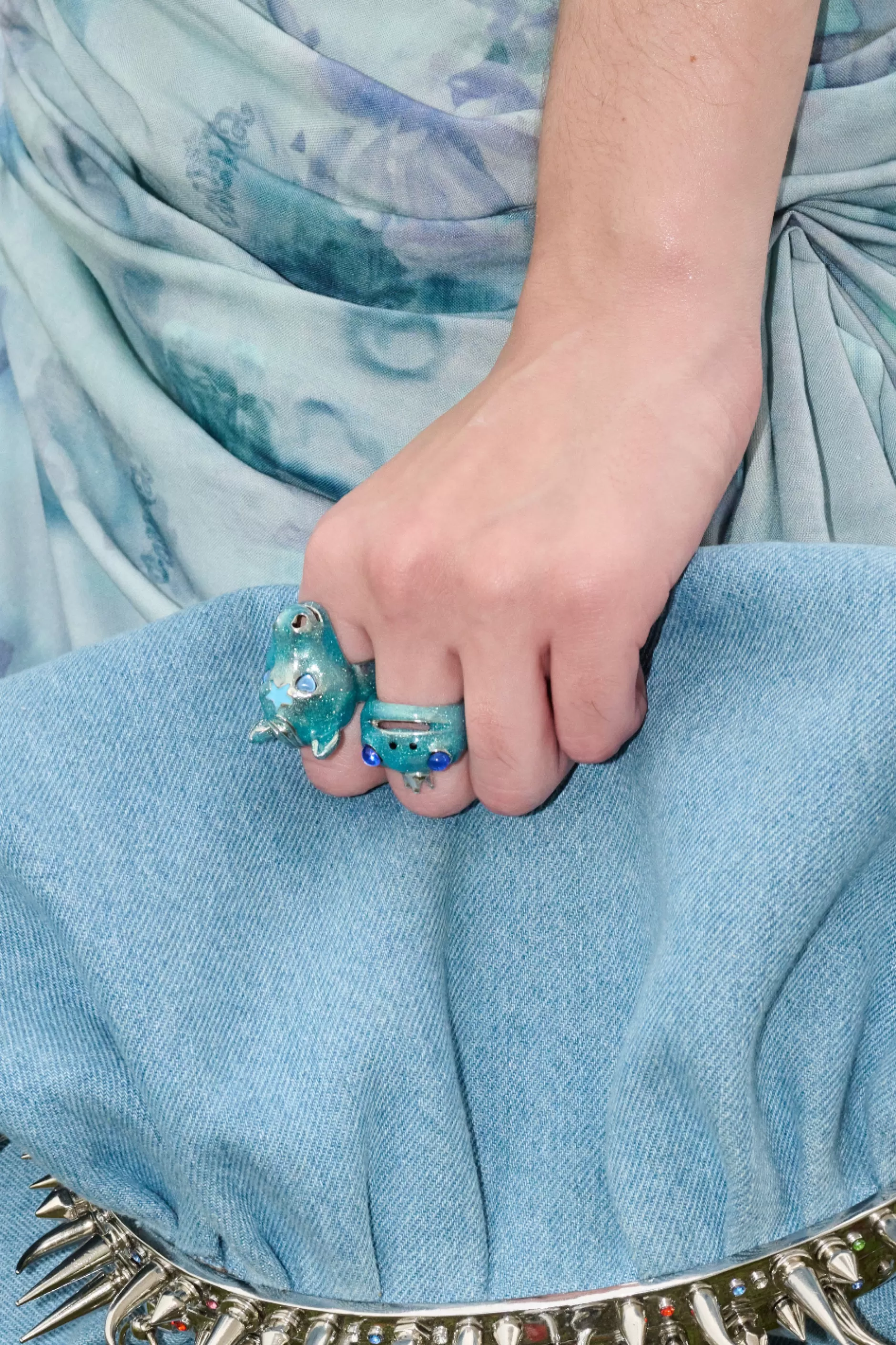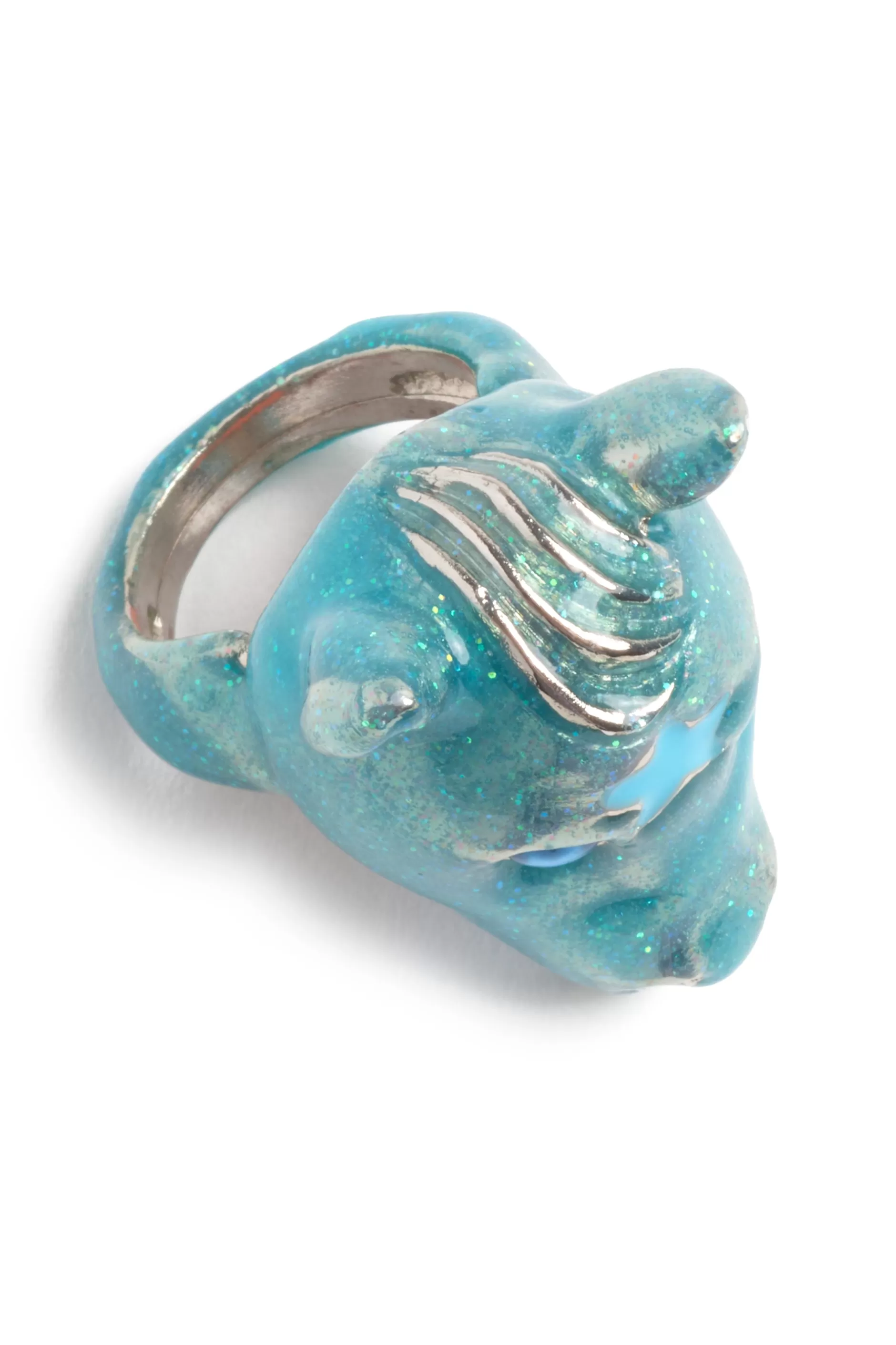 Baby pony ring in glitter sky blue with cyan blue eyes and star.