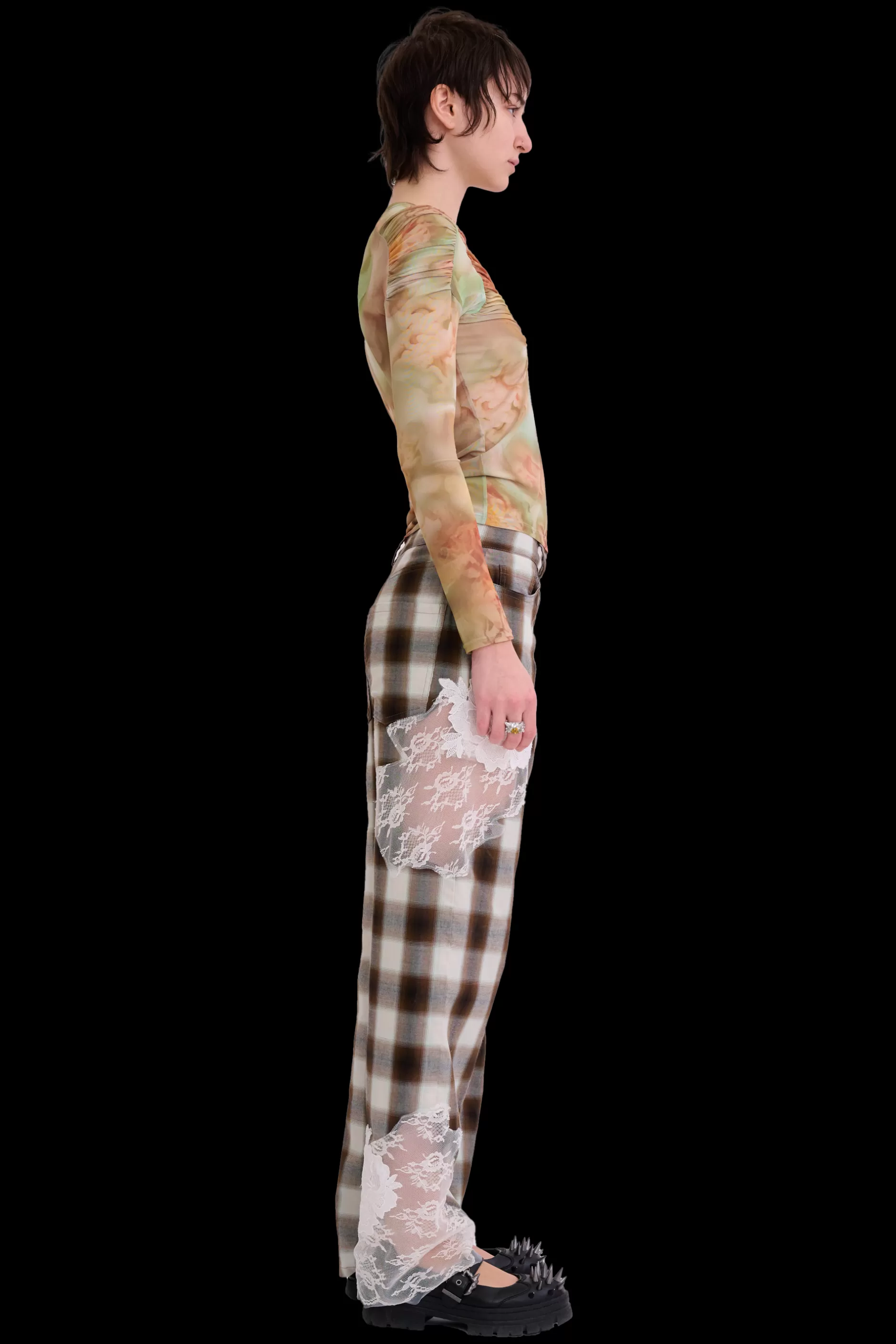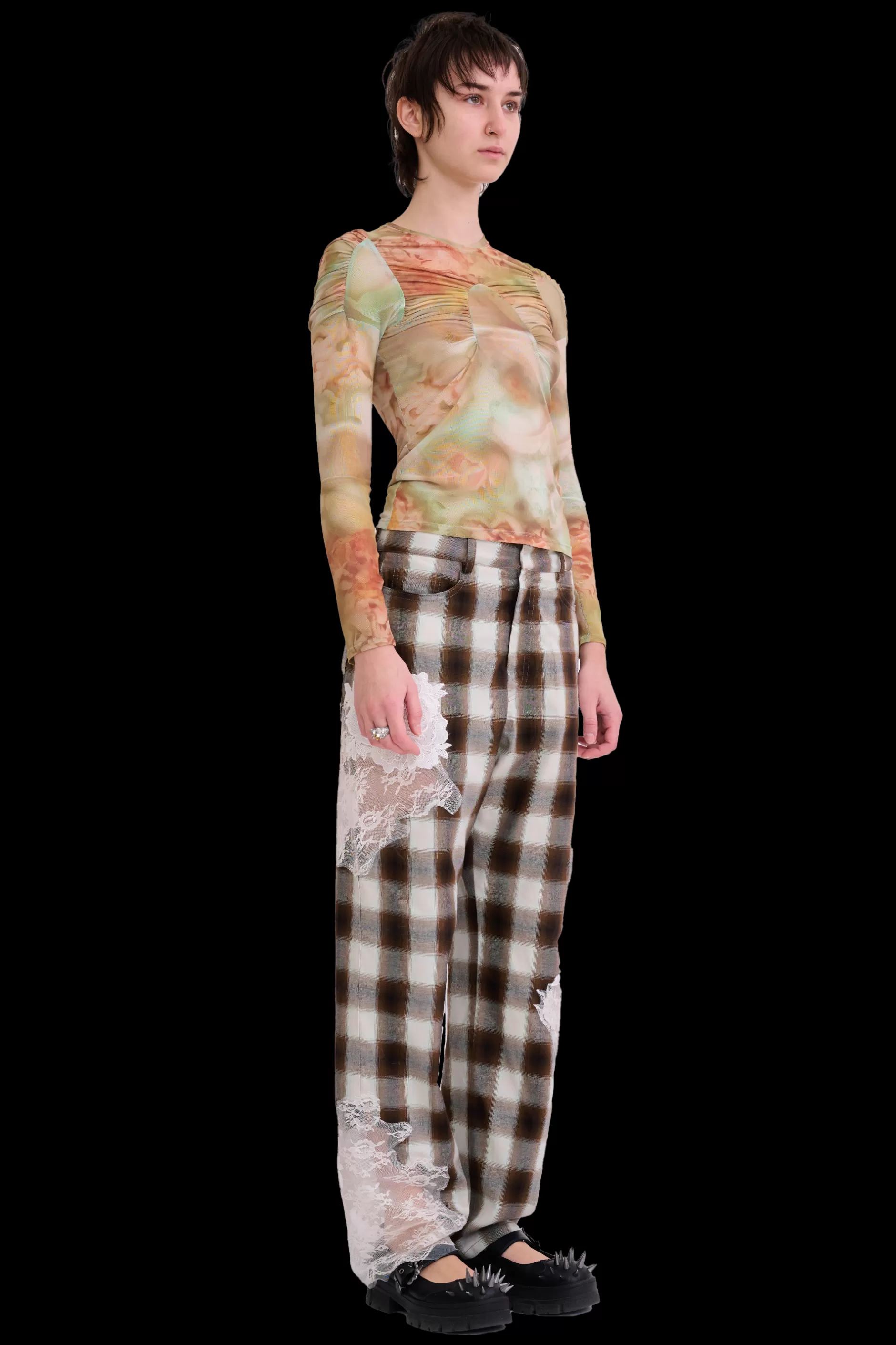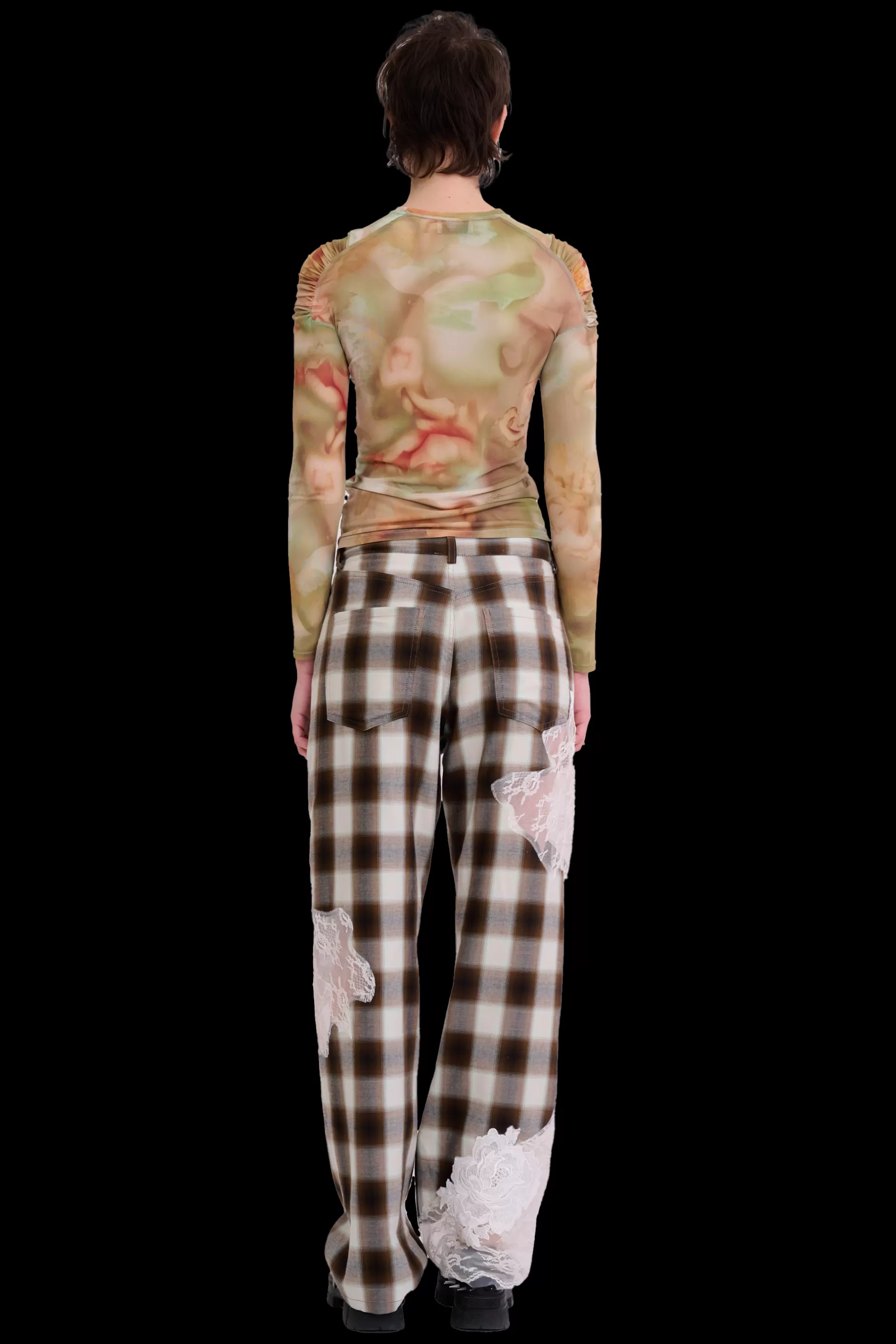 Mid-rise, relaxed fit flannel jean with lace cut outs.51% cotton 49% cupro, trims 100% NylonMade in IndiaModel wears a s…