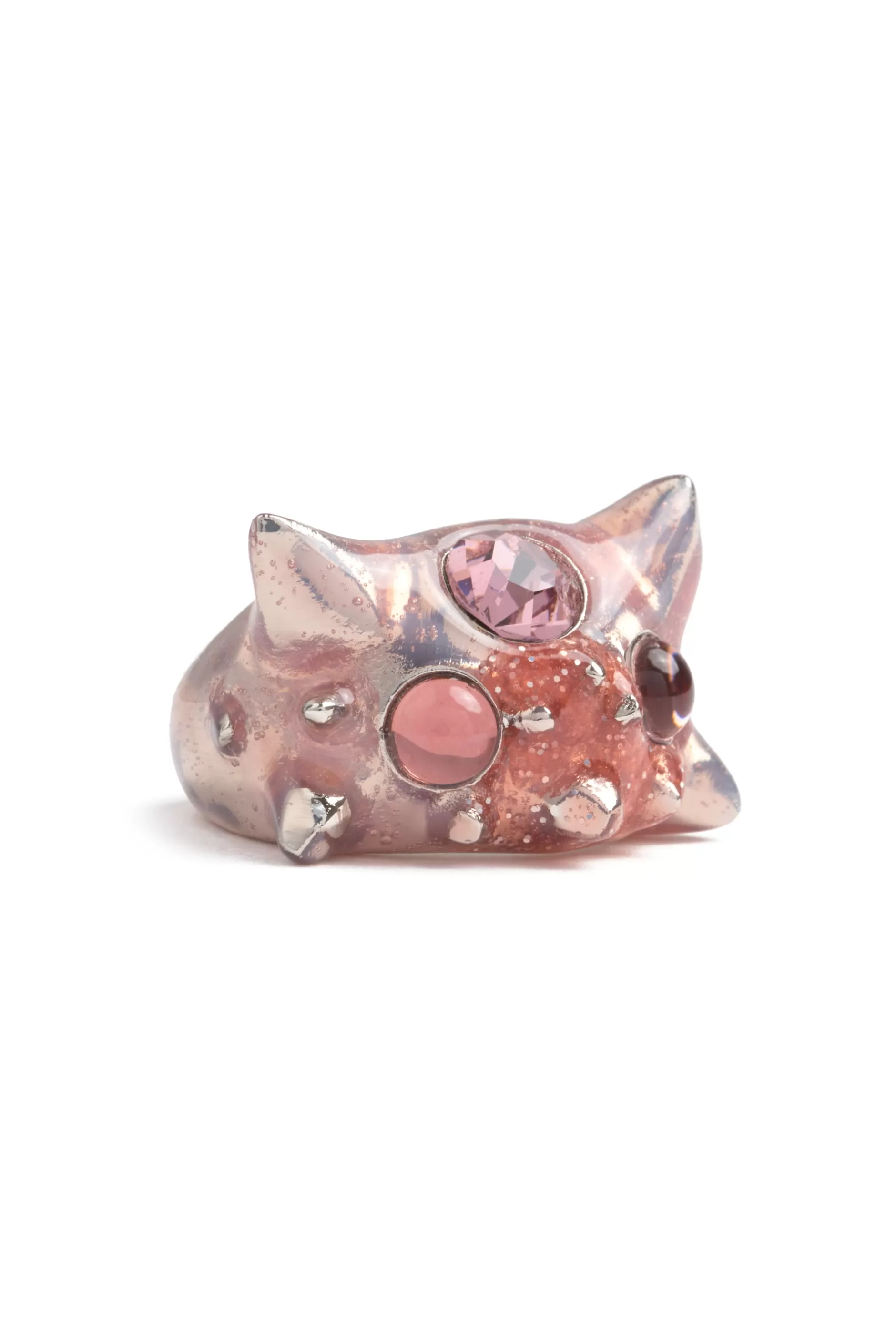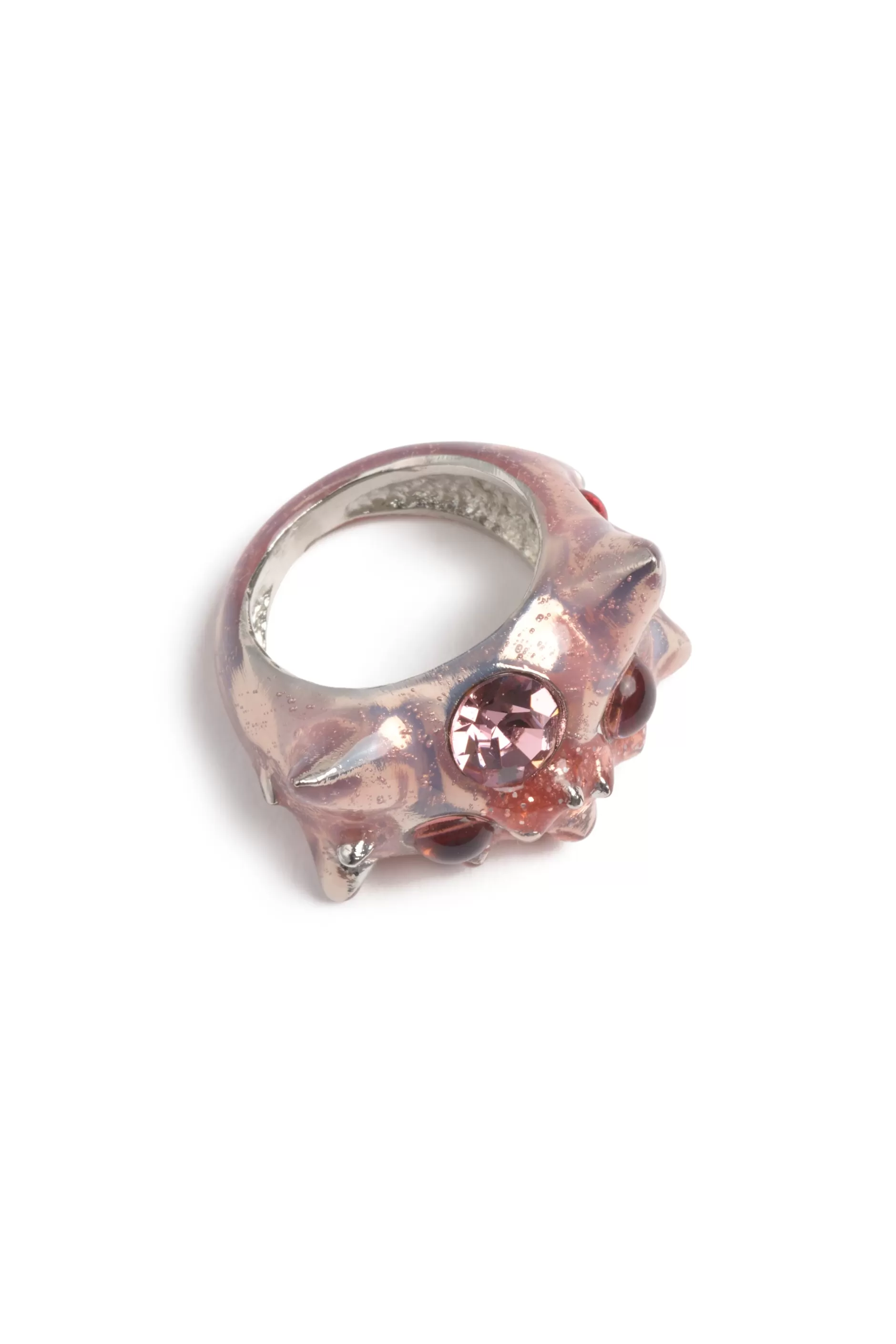 Spiky ring with gradient effect and rhinestones and cabochons. Hand enameled