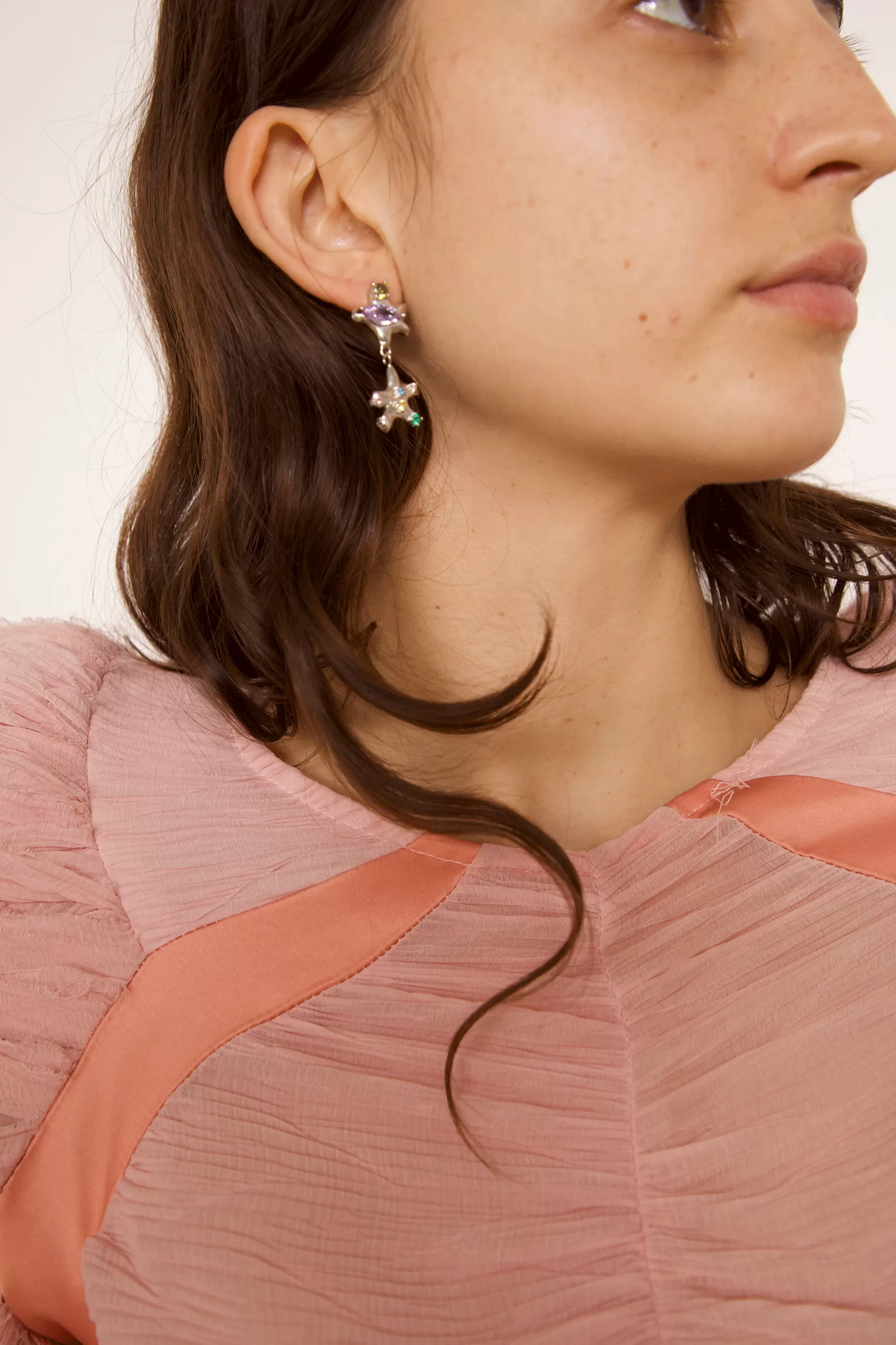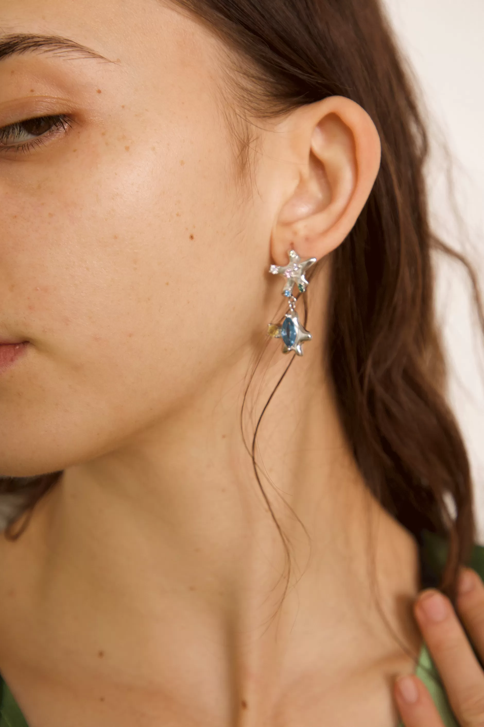 Mix dangling star earrings with clear rhinestones. Stud back.100% sterling silver and cubic zirconia