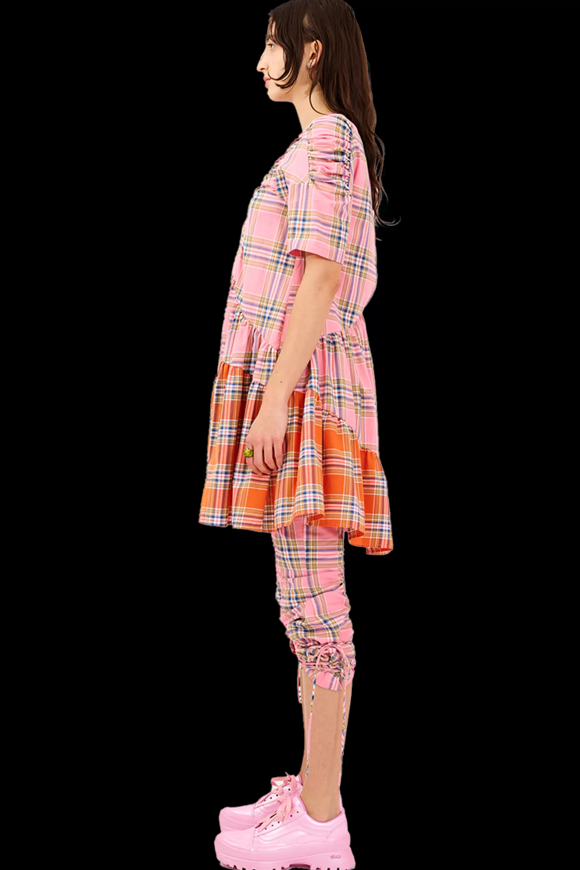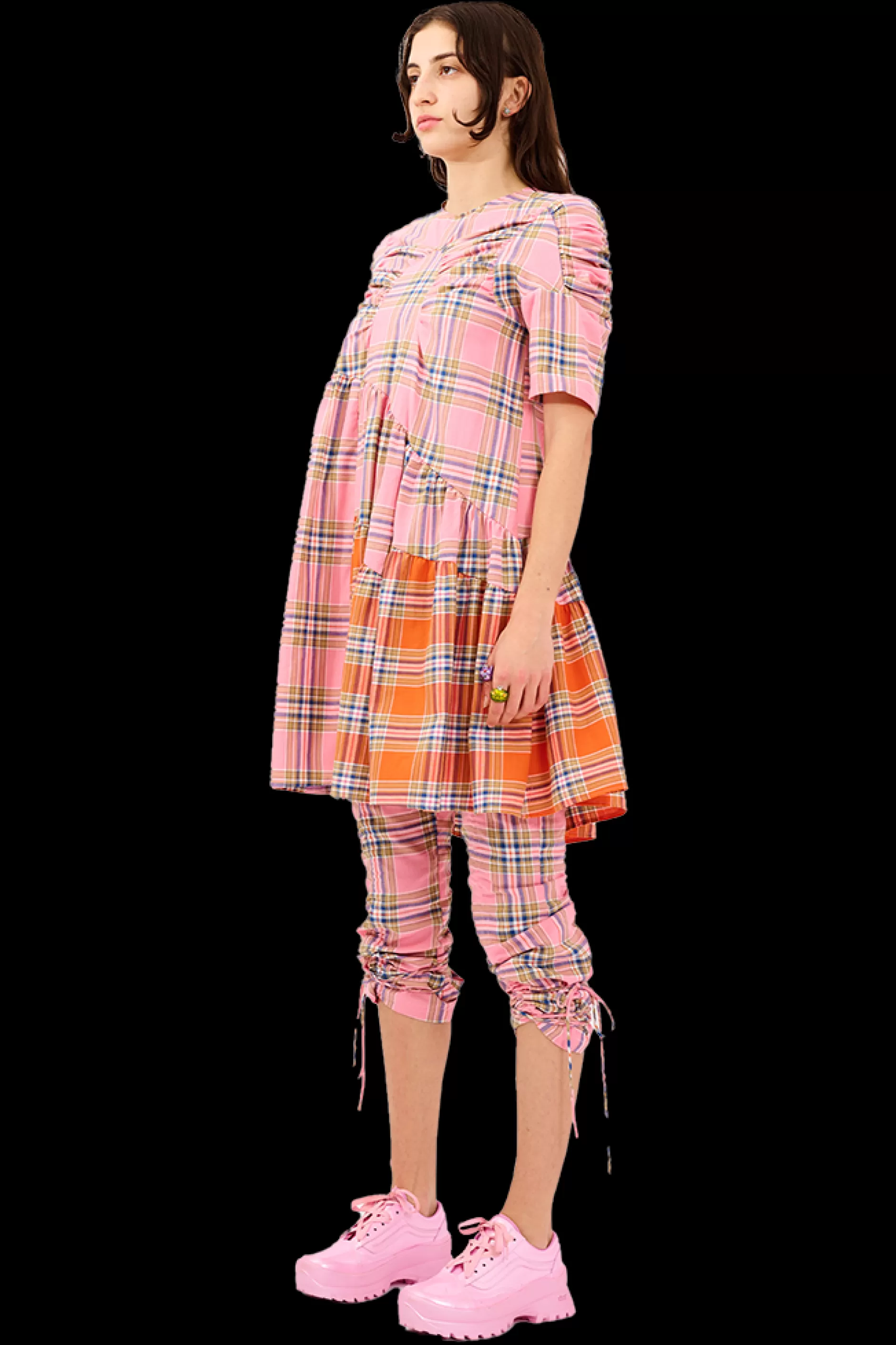 PINK-ORANGE PLAID ARC MIDI DRESS | Collina Strada Flash Sale