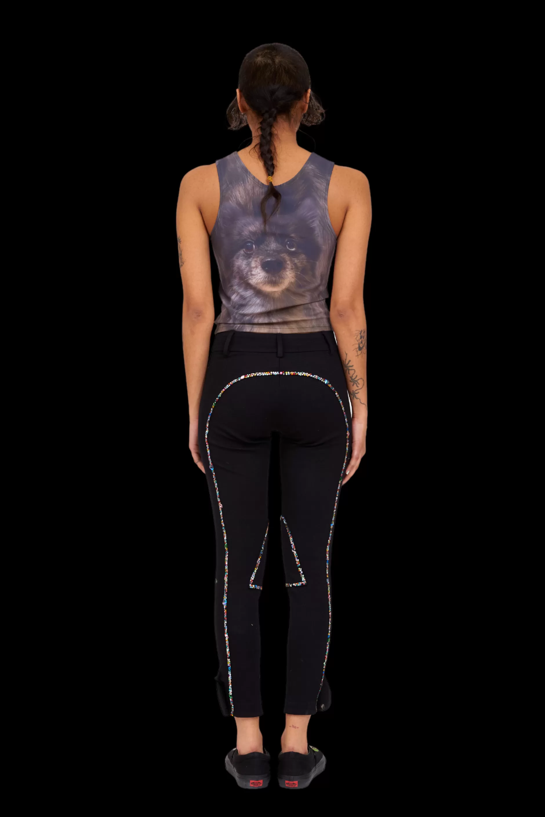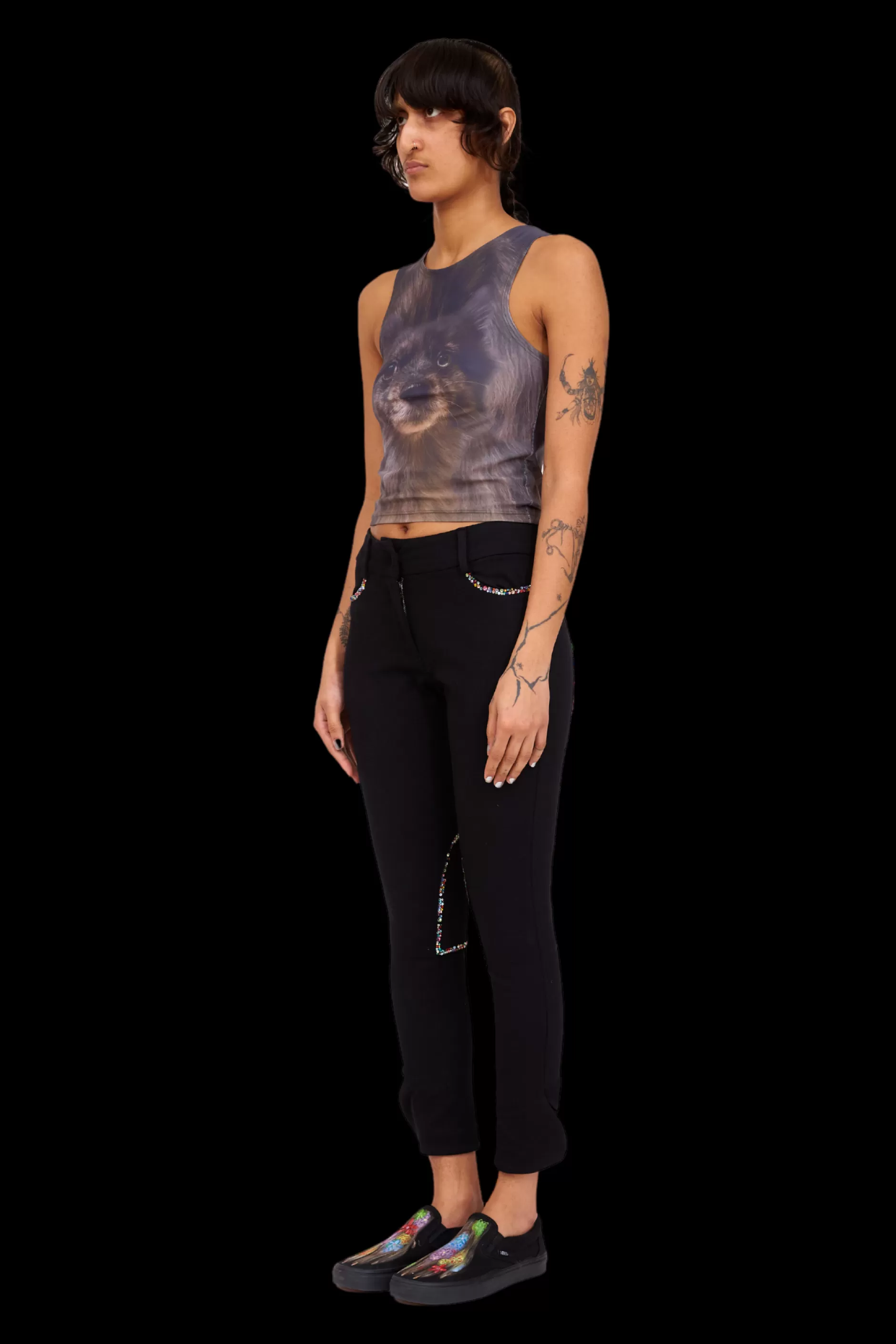 Crew neck tank top featuring Powie, as seen in September Vogue, on front and back. Athletic performance fabric.