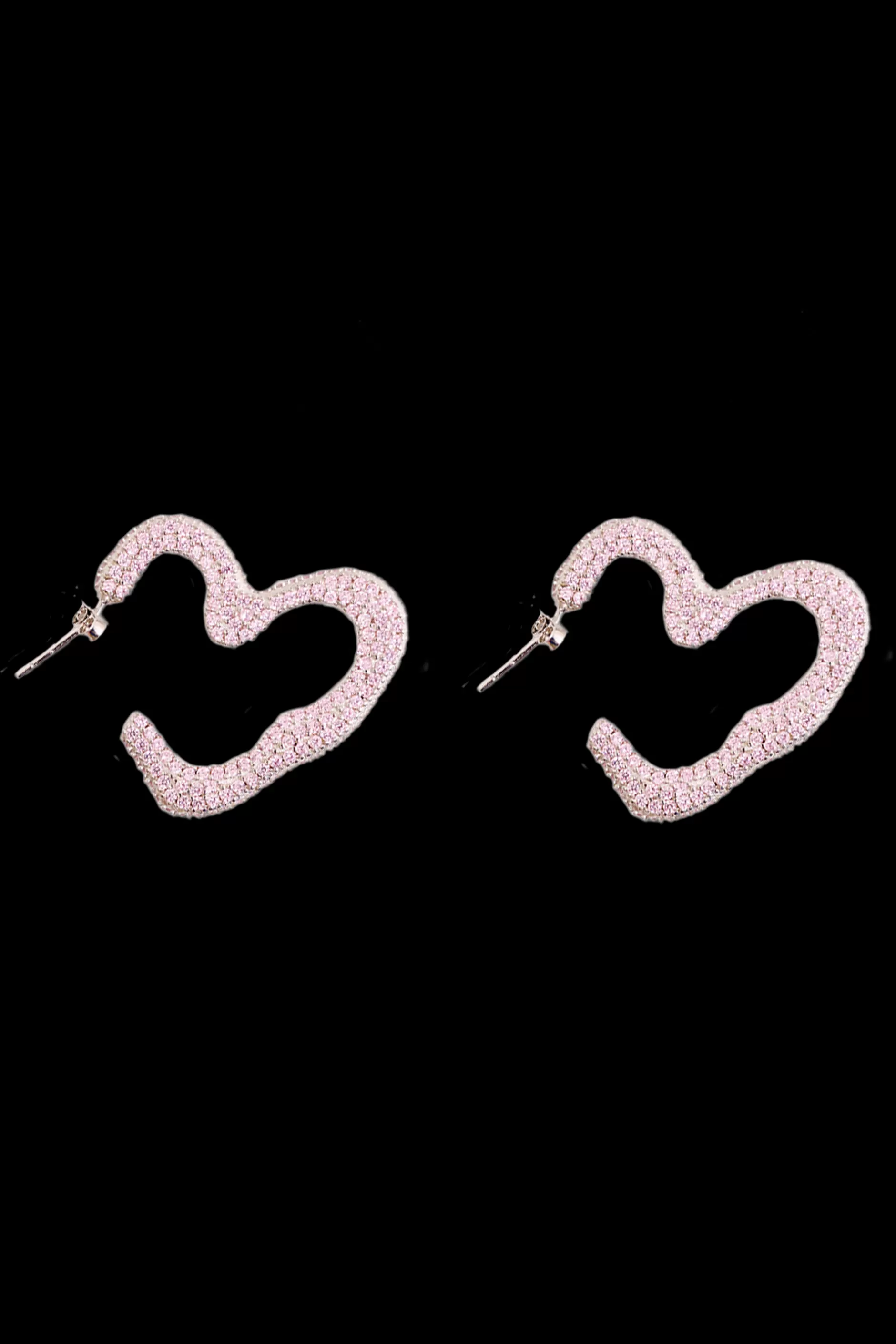 Sterling silver oversized heart earrings encrusted in rose pink rhinestones. Organic open heart shape with stud backing.100% sterling silver.