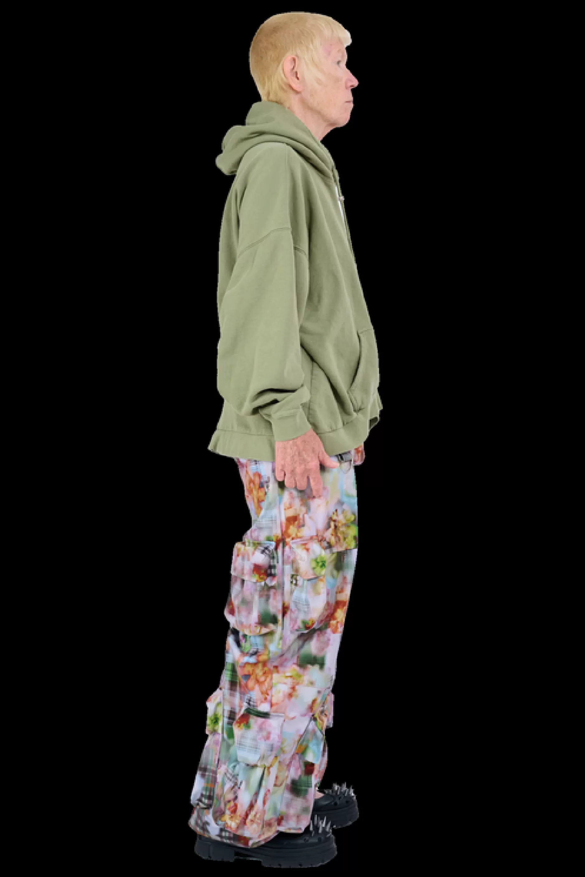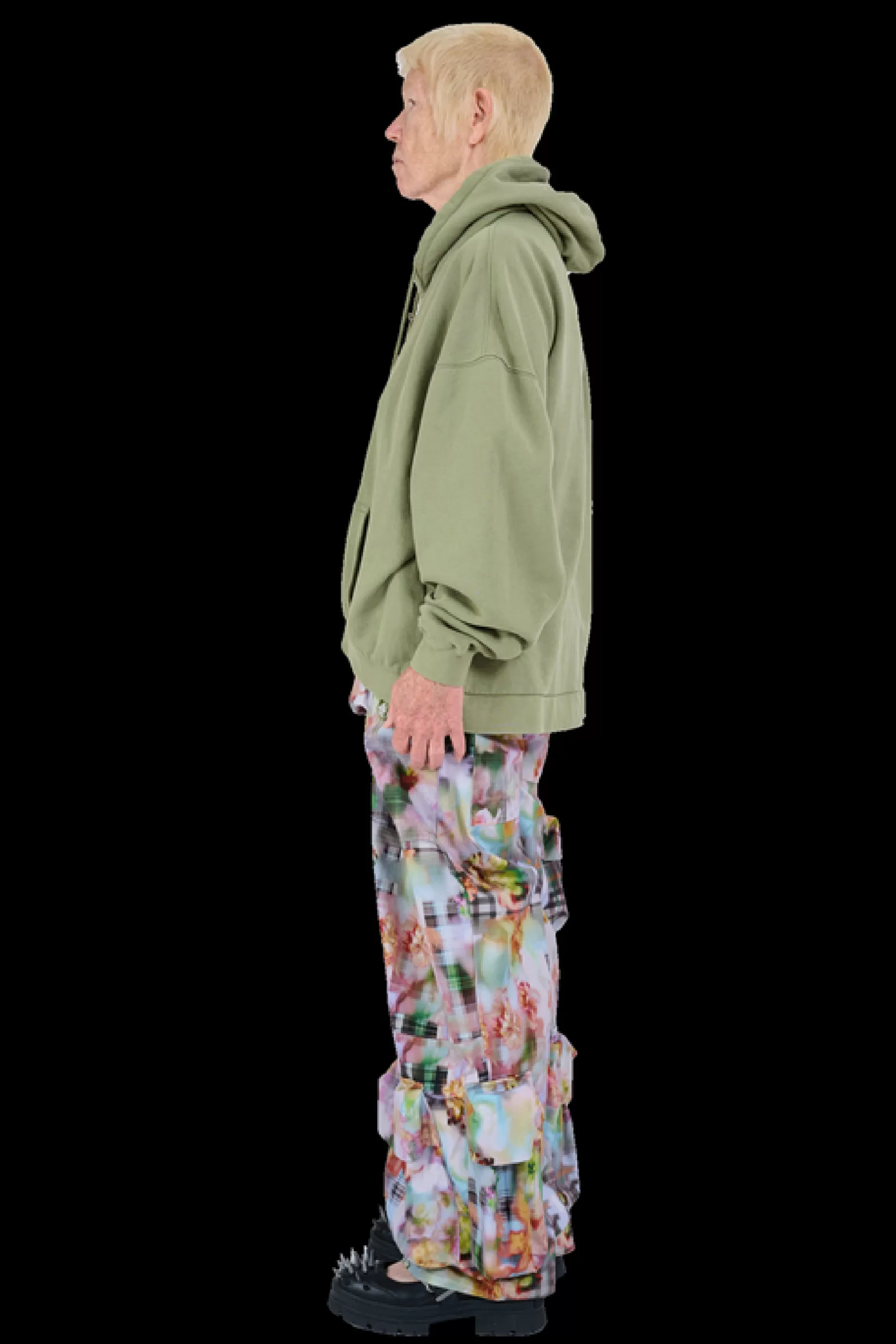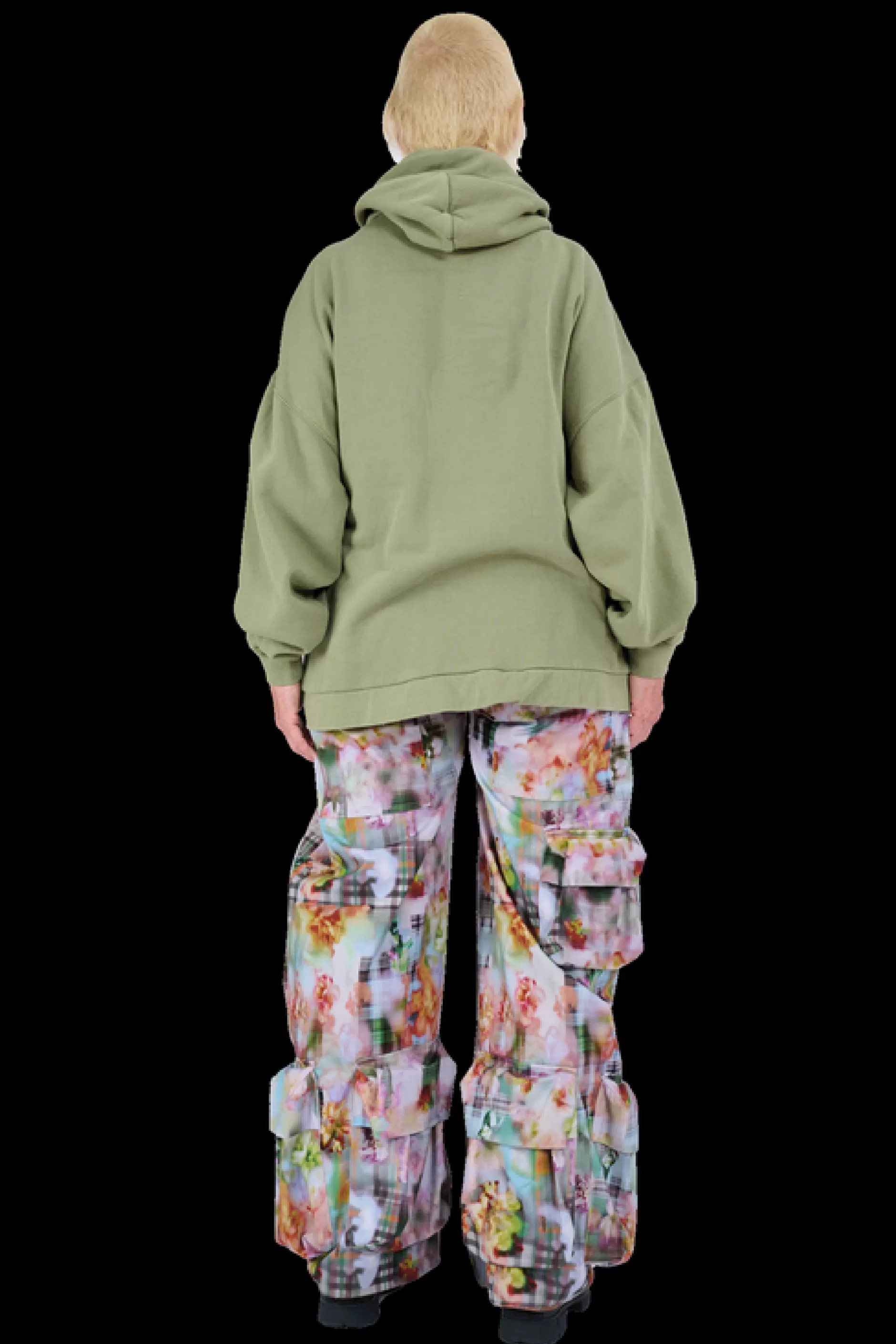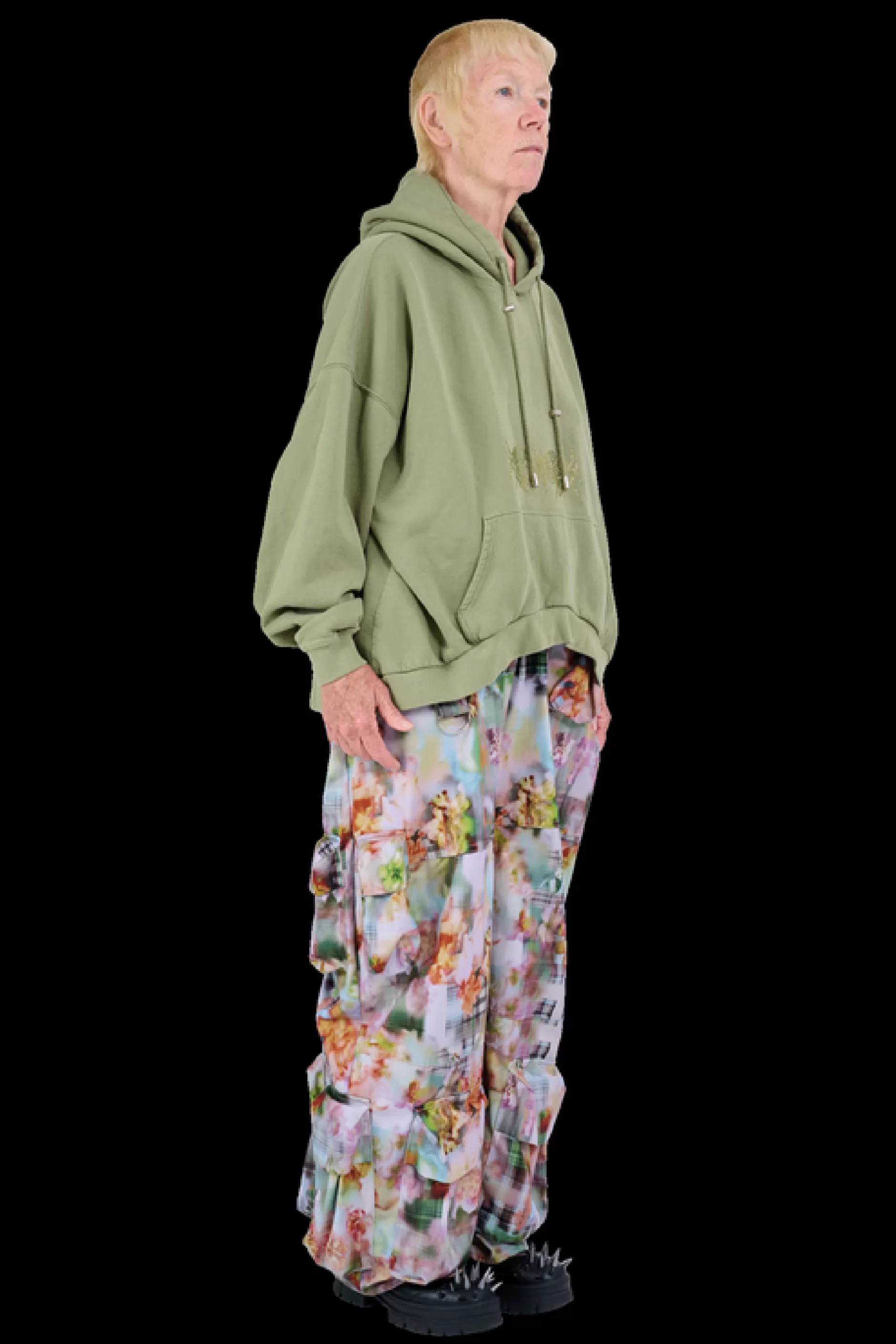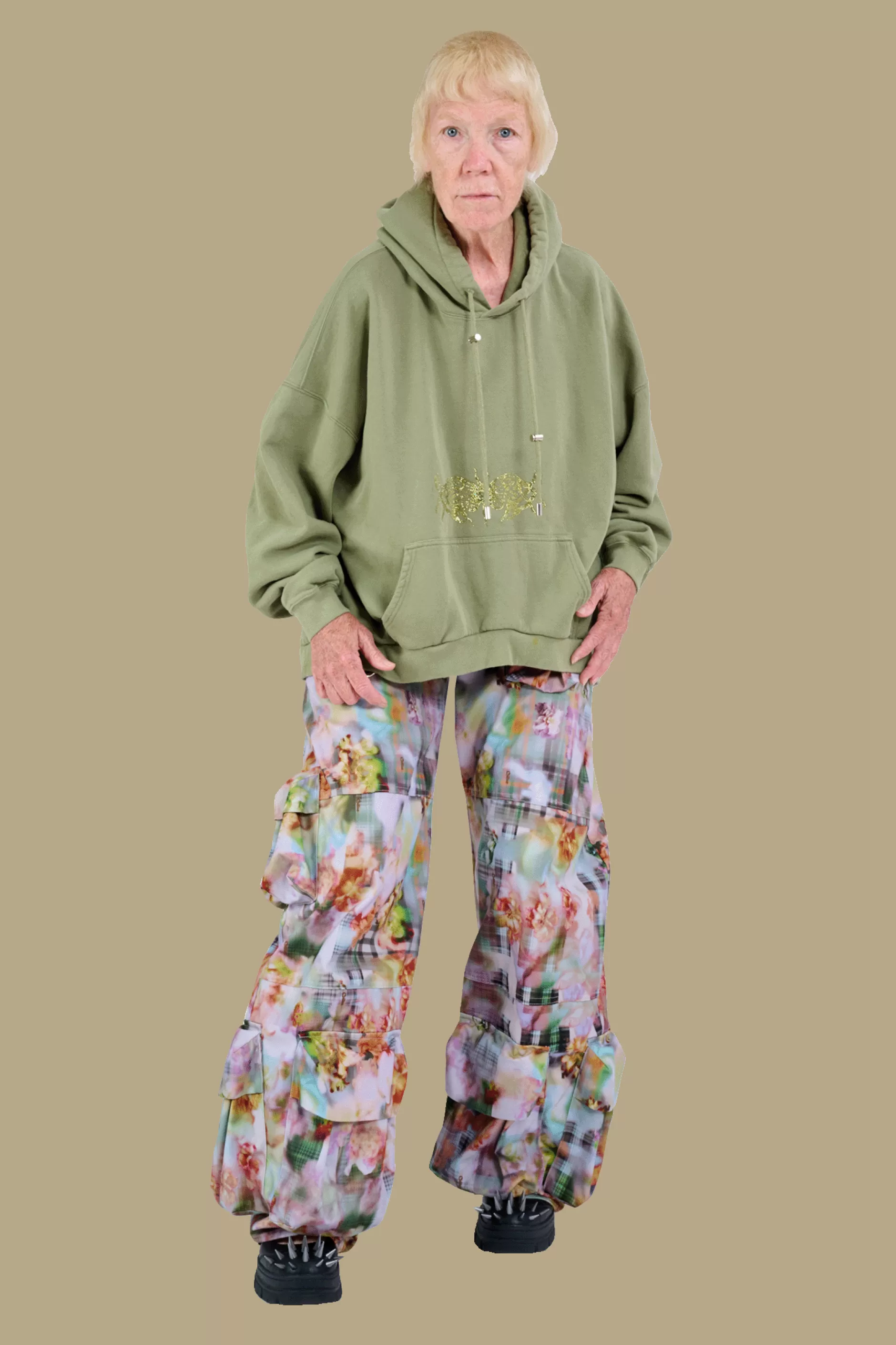Round hem hoodie. Rhinestone tattoo on front.Made in Portugal, hand painted in New York100% Deadstock Cotton Fleece Mod…