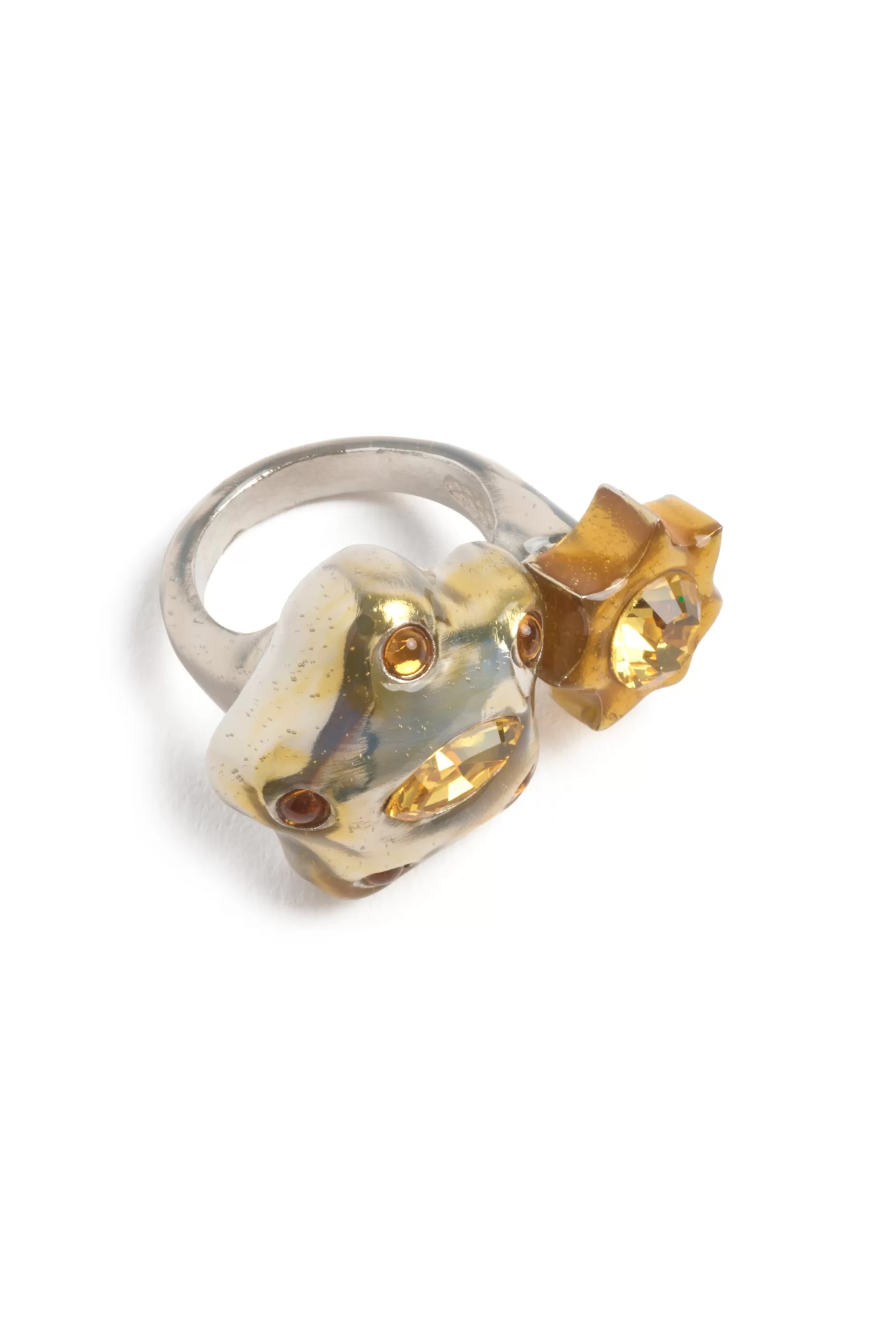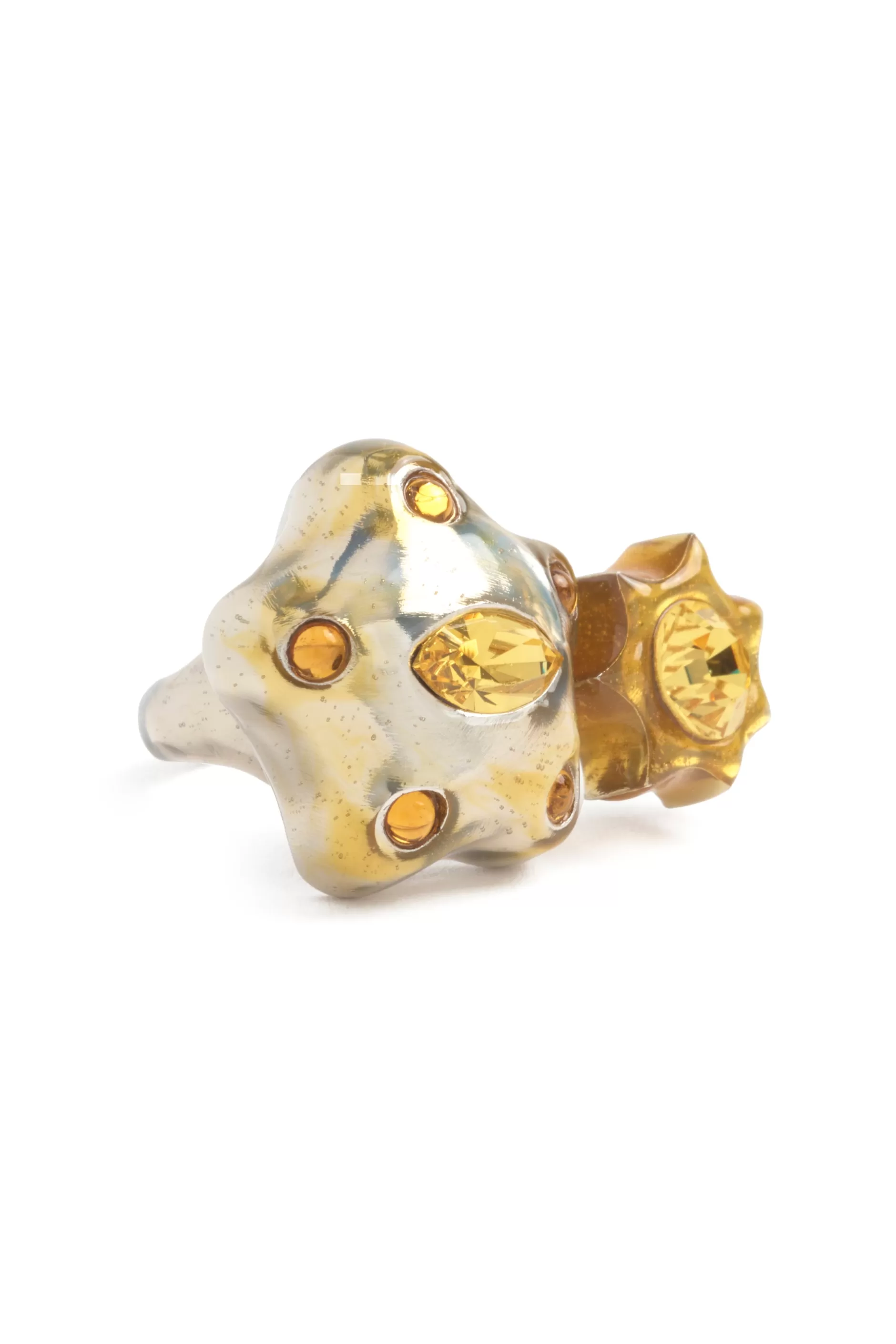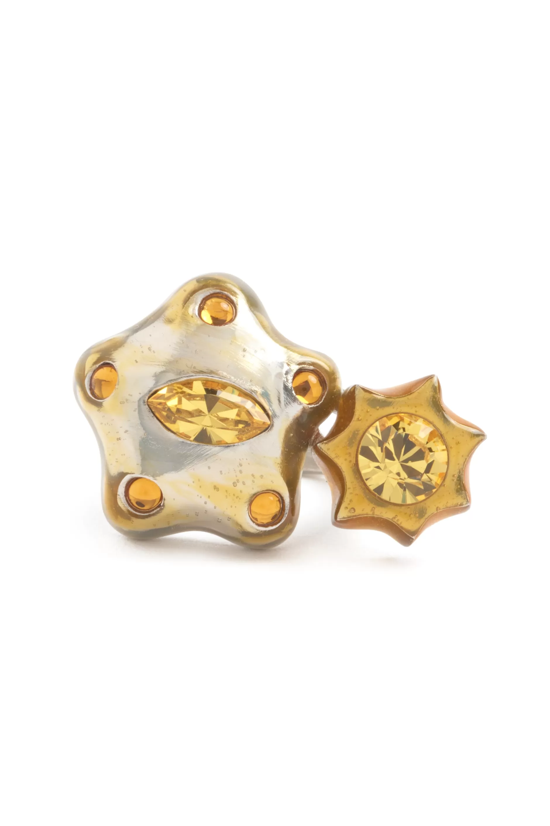 Organic star-shaped ring with gradient effect and canary rhinestones. Hand enameled.