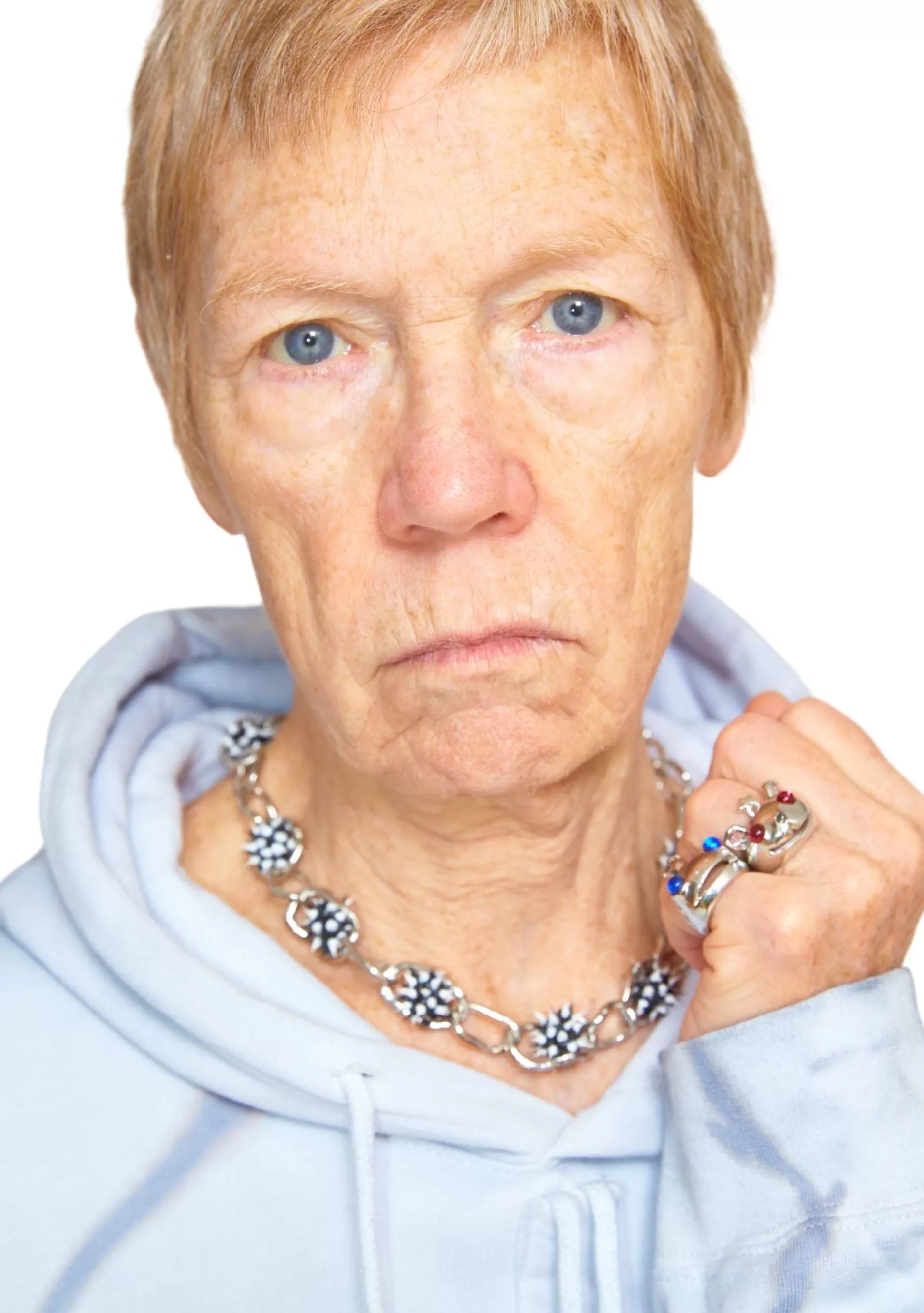 Silver Frog Prince ring with blue eyes.