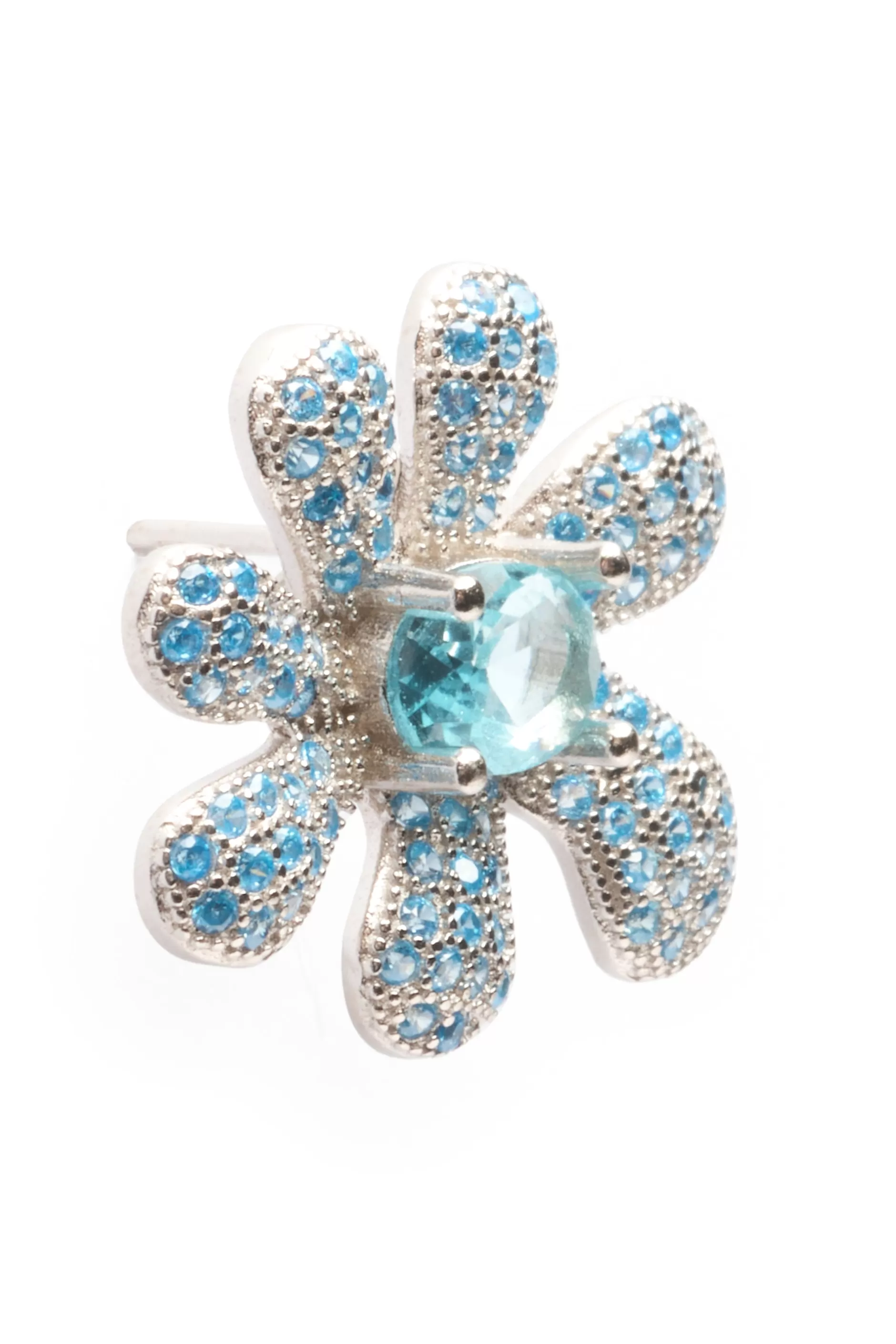 Sterling silver flower blossom, mismatched pair, encrusted with rhinestones. Stud back.