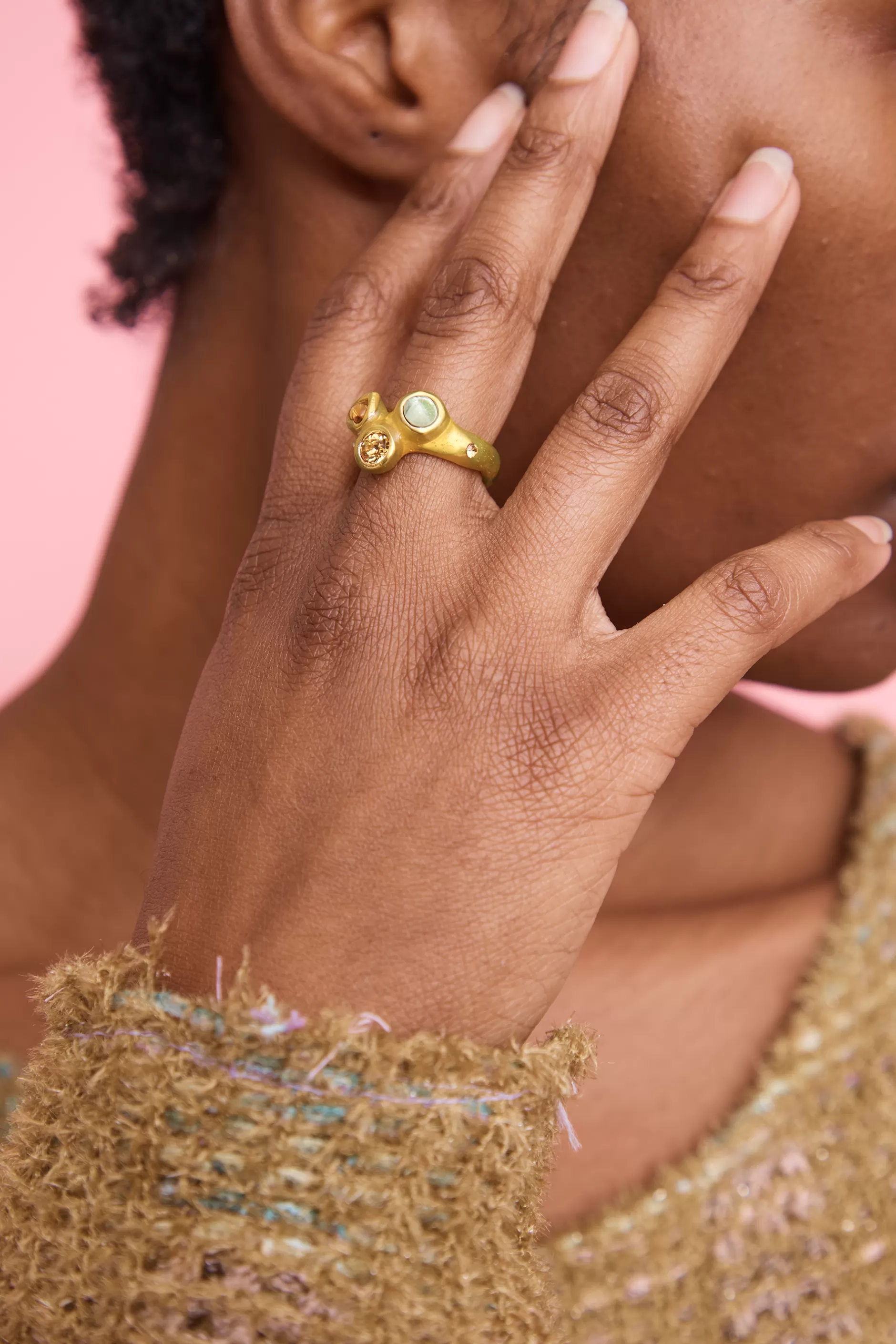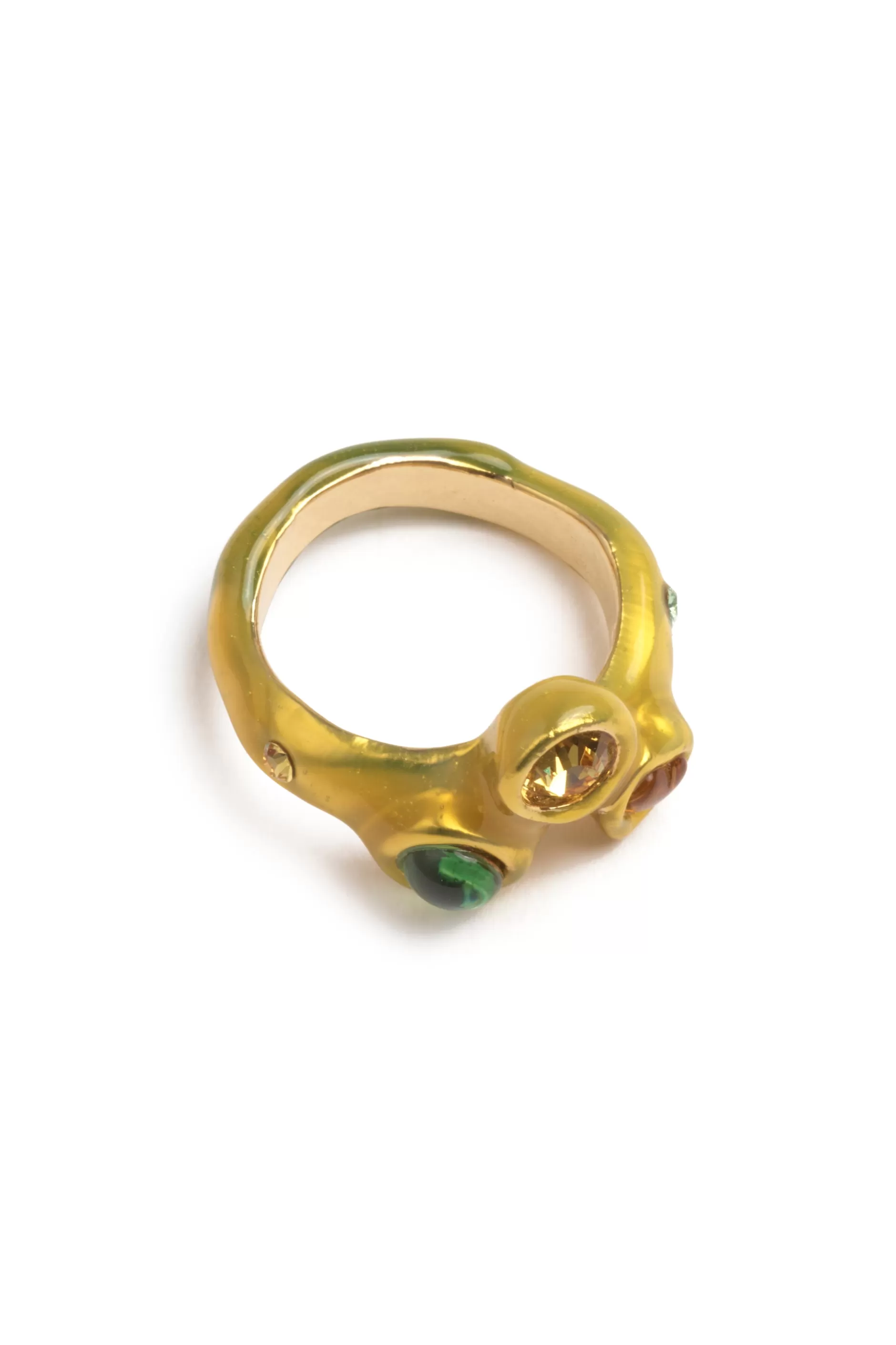 Dainty, organic ring with dead stock rhinestones and cabochons.Hand enameled